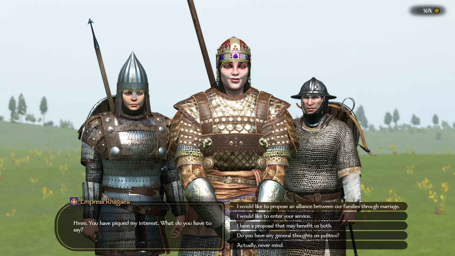 其他所有氏族成员都可以安全地卖为奴隶或释放,因为如果你邀请他们加入,他们会说这类问题最好由氏族首领来决定。此外,最好在战后立即释放被俘的领主。这不仅能提升你的魅力技能,还能改善你与领主们的关系,而在进行劝说时,良好的关系是必不可少的。 仔细研究氏族的实力指标、财富水平,最好还要了解氏族首领与其所属派系现任统治者的关系。如果这个氏族富有、强大且忠于其国王,那么当你试图动摇他的誓言时,他会直接拒绝与你交谈。在这里,氏族首领对你的态度起着重要作用。贫穷氏族的首领很可能已失去君主的支持,因此只需与他谈论他对君主的看法,并提议更换主人即可。