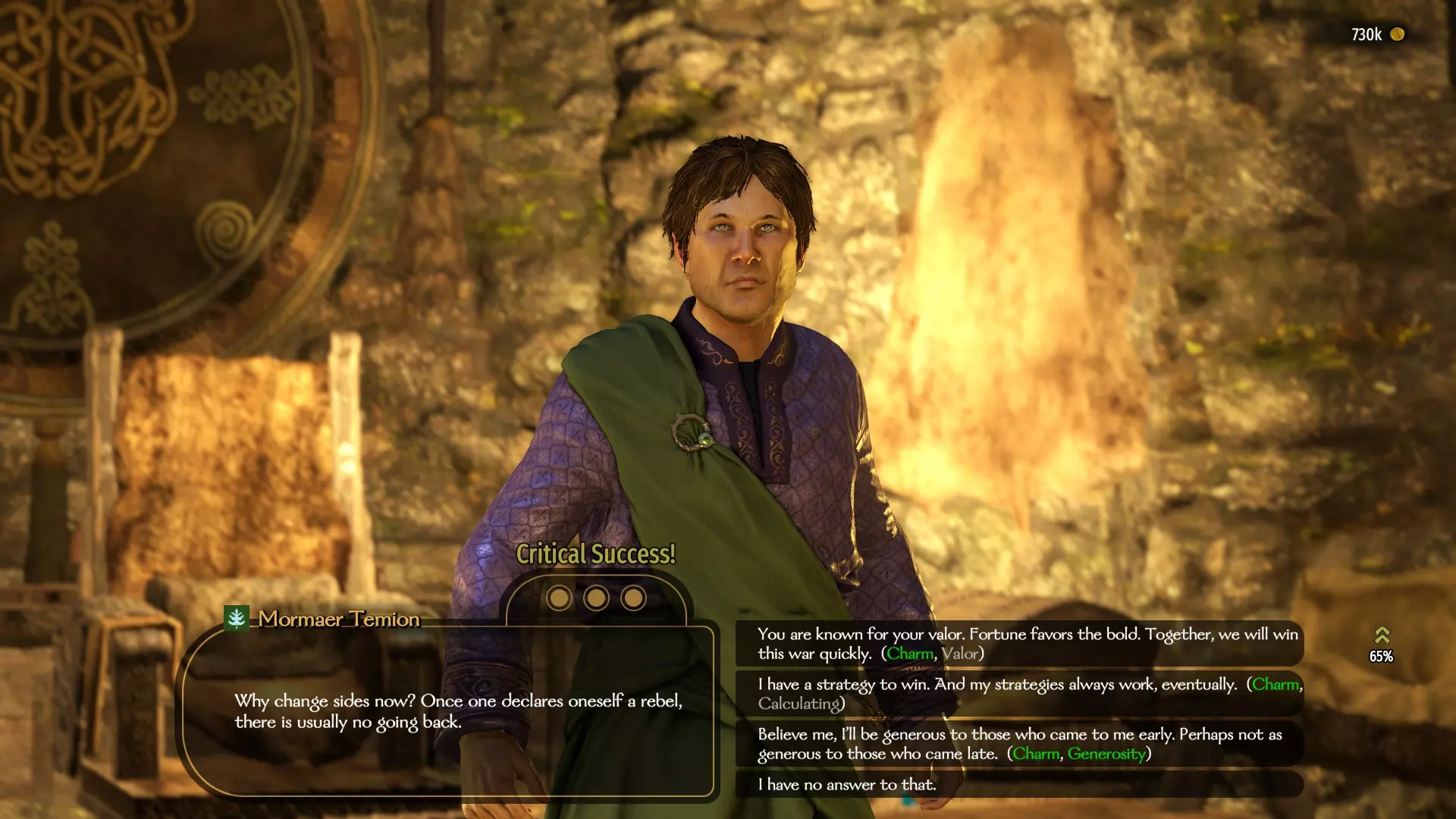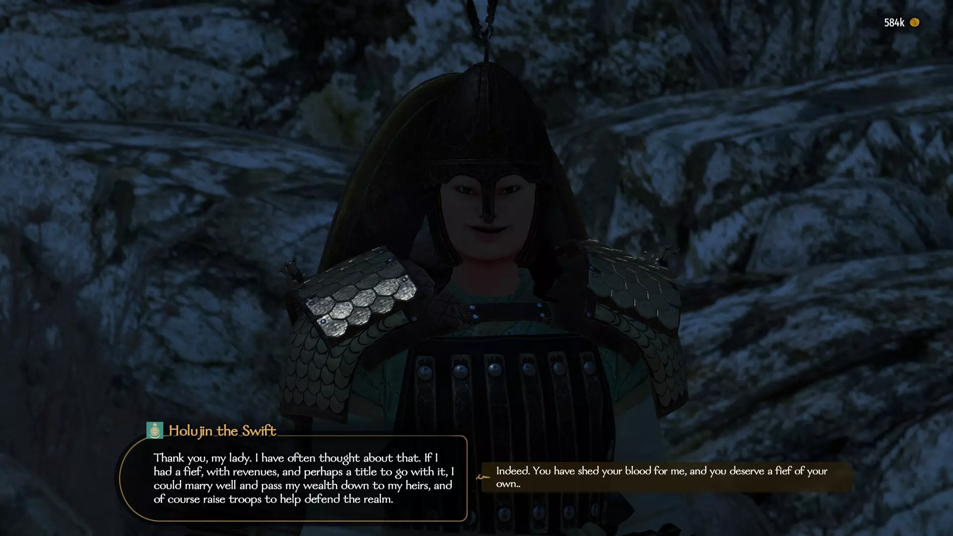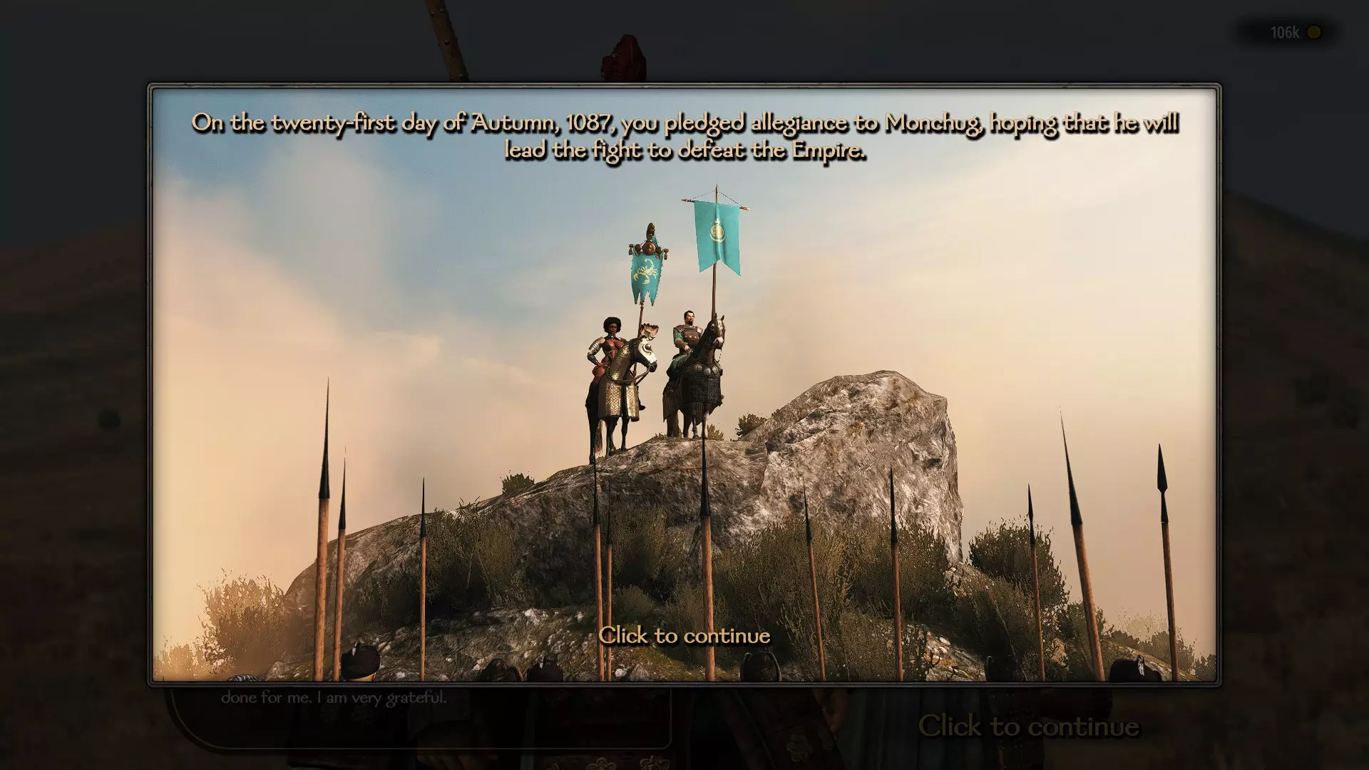 如果你的角色因技能不足而无法说服其他领主,那么可以通过另一种方式获得该成就。只需成为一个活跃派系或自己派系的领袖,然后与你已招募的任意同伴交谈。在与他们的对话中,你可以为他们的忠诚提供奖励,并使他们成为你的封臣。