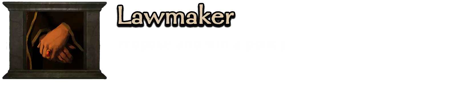 一旦你离开城市,成就就会解锁。 这个成就是可能错过的!尽量在游戏开始时尽快解锁它。这是因为你的声望等级——你越有名,在没有升级流氓技能的情况下潜入敌方定居点而不被发现就越困难。在某些时候,由于你太有名,潜入敌方城市的概率将为0%。 Veni vidi vici