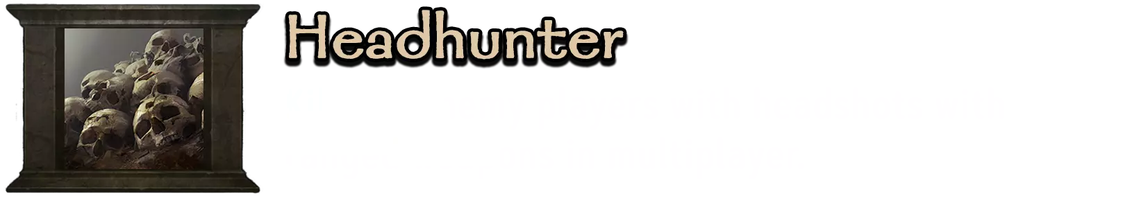 我建议以重骑兵枪兵开局,通过骑兵冲锋以及徒步和骑马时使用近战武器来完成击杀。之后你需要死亡,如果你有足够的金币,就选择骑射兵。否则,你将不得不选择步弓手,并骑上敌方或友方死者的马。 一场小规模战斗最多持续到某一方获得5次胜利,因此你有多次尝试获取成就的机会。记住,新一轮开始时,所有击杀都必须重新完成。你也可以尝试寻找玩家数量更多的非官方服务器,对手越多,击杀他人的机会就越大。 Head hunter ✔