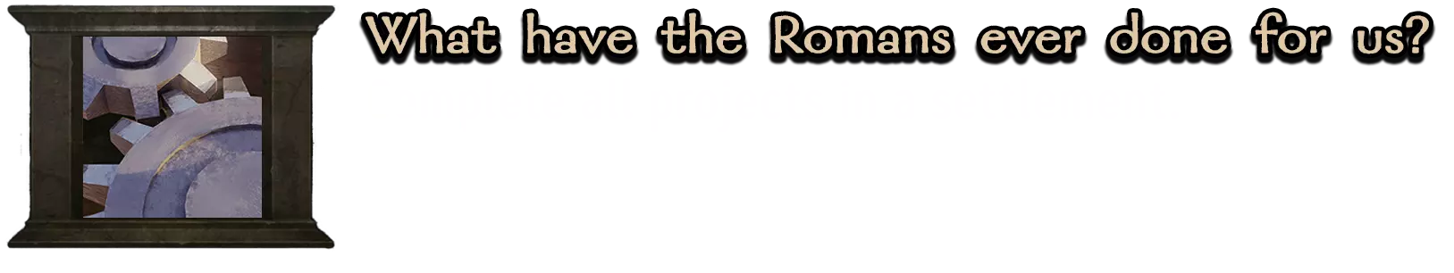 要解锁此成就,你需要选择任意一个你控制的城堡或城市,并将其中所有建筑都升级到最高等级。这并不困难,但却是一个非常漫长且耗时的成就,因为建筑的建造速度取决于城市的当前状态。可以通过向城市投入资金或使用管家技能树中的专长来加快建造速度。 你也可以在游戏后期攻占一座大部分建筑已建成的敌方城市。在这种情况下,一旦你控制了一座没有更多可建造内容的城市,该成就也会立即解锁。
