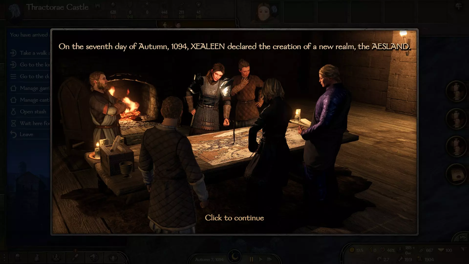 达成协议后,你的配偶会加入你的氏族,但会位于其所属派系的某个城市中。将他/她召回你的队伍,一同游历世界——无论是在城市中等待,还是在地图上处理事务都可以。关键是要与配偶处于同一队伍中。