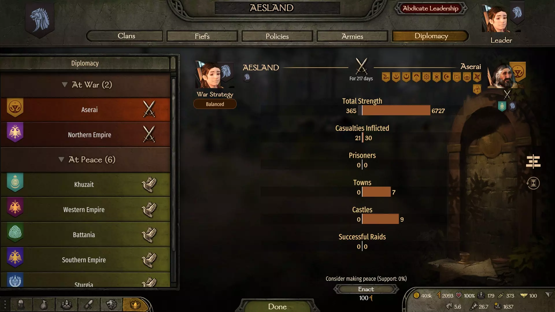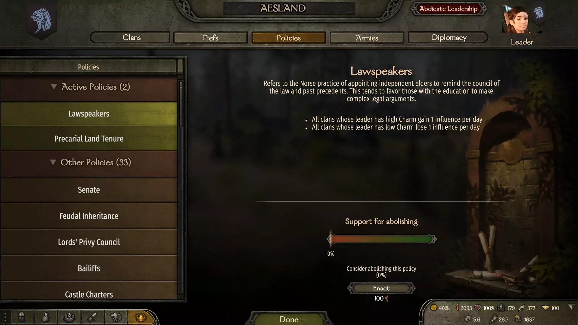 首先,你需要创建自己的王国,或者宣誓效忠于卡拉迪亚的某个王国。进入王国菜单,找到政策或外交选项卡。你可以消耗影响力资源来提议任何你喜欢的政策。此外,你也可以用同样的方式与正在交战的王国考虑议和。