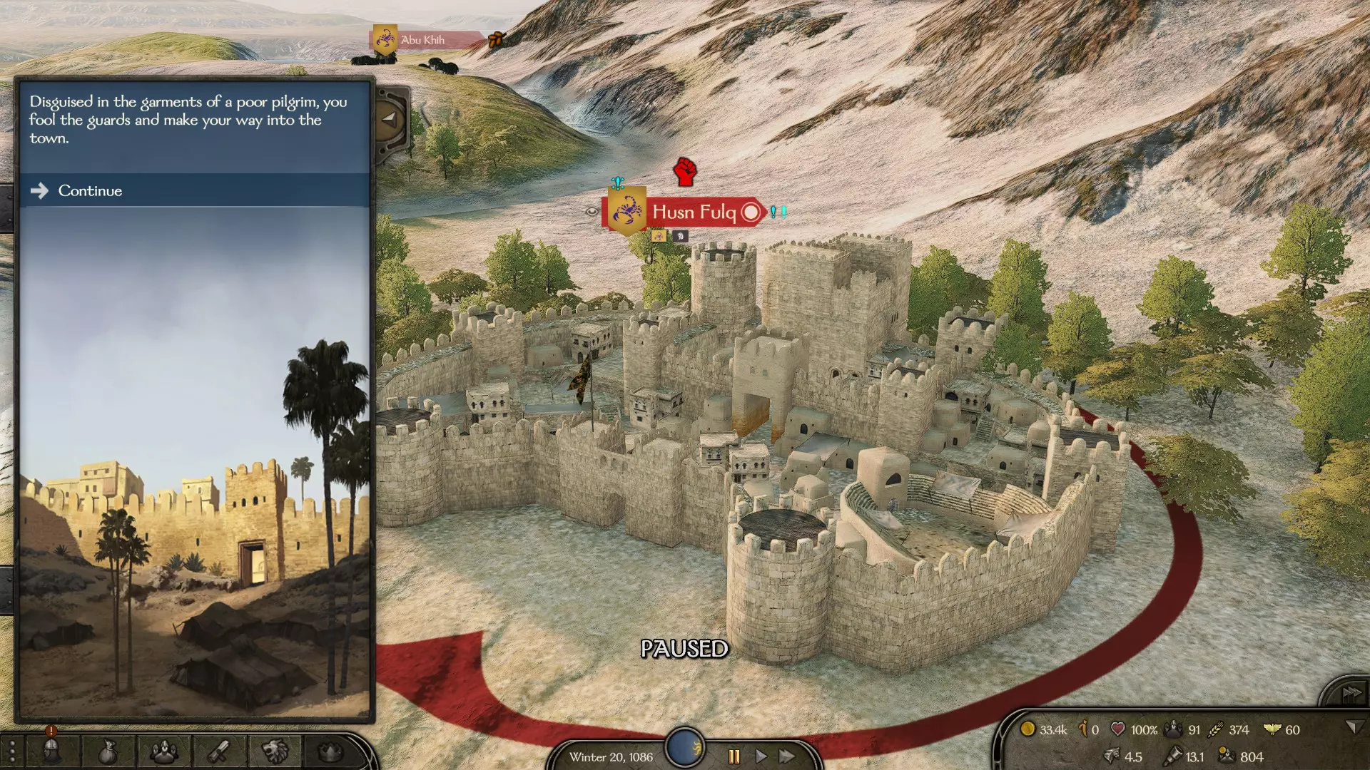 与卡拉迪亚的任意王国开战,并取得战争的主要胜利:攻占城堡和城镇,击败敌方领主的军队并将他们俘虏。强烈建议不要允许该势力通过支付赎金赎回被俘领主——将他们关押在你主城的地牢中。 在某个时候,你可能会收到敌方势力的消息,提议结束战争并签订和平协议,条件是支付贡金。