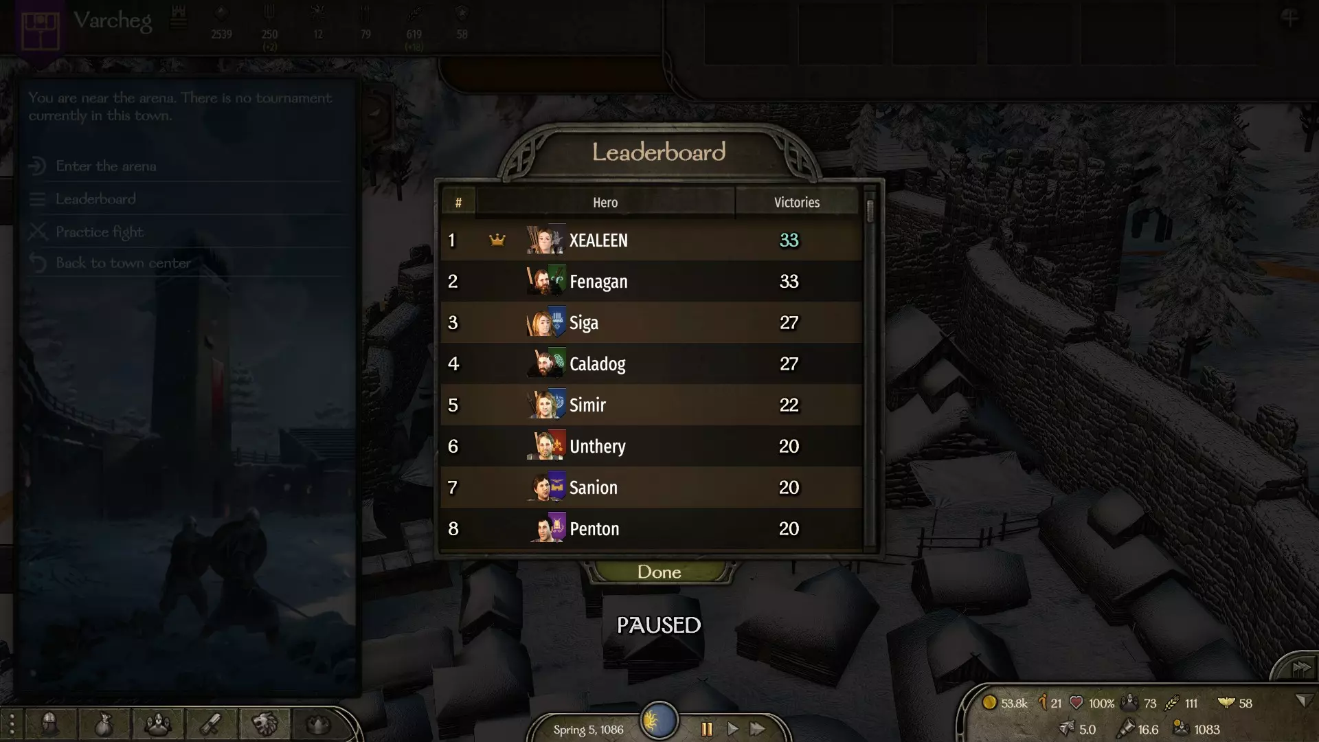 通常,你只能在竞技场参加训练战,但有时城市中会举办锦标赛。如果你赢得锦标赛,不仅能获得珍贵奖励和声望,还能获得提升排行榜名次的积分。当你积累足够胜利后,下次打开排行榜时,若你位于榜单顶端且名字旁有皇冠图标,该成就就会解锁。