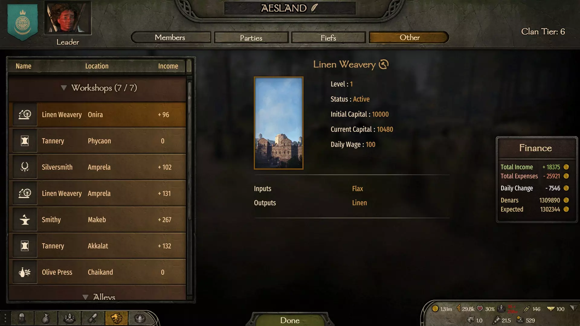 工坊价格可能有所不同,但平均价格不应超过30,000金币。 商队的派遣费用是固定的,普通商队总是花费15,000金币,而重兵护卫商队则需要22,500金币。此外,创建商队时,你需要指派一名同伴或家族成员担任商队领袖。