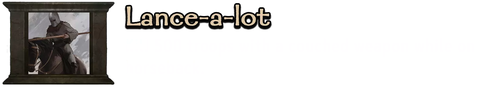 可在单人模式中解锁。任何可在马上使用的远程武器均可,但建议使用弓箭,因为投掷武器弹药少且射程近。骑上马匹,射击没有护甲、盾牌和头盔的敌方士兵头部。