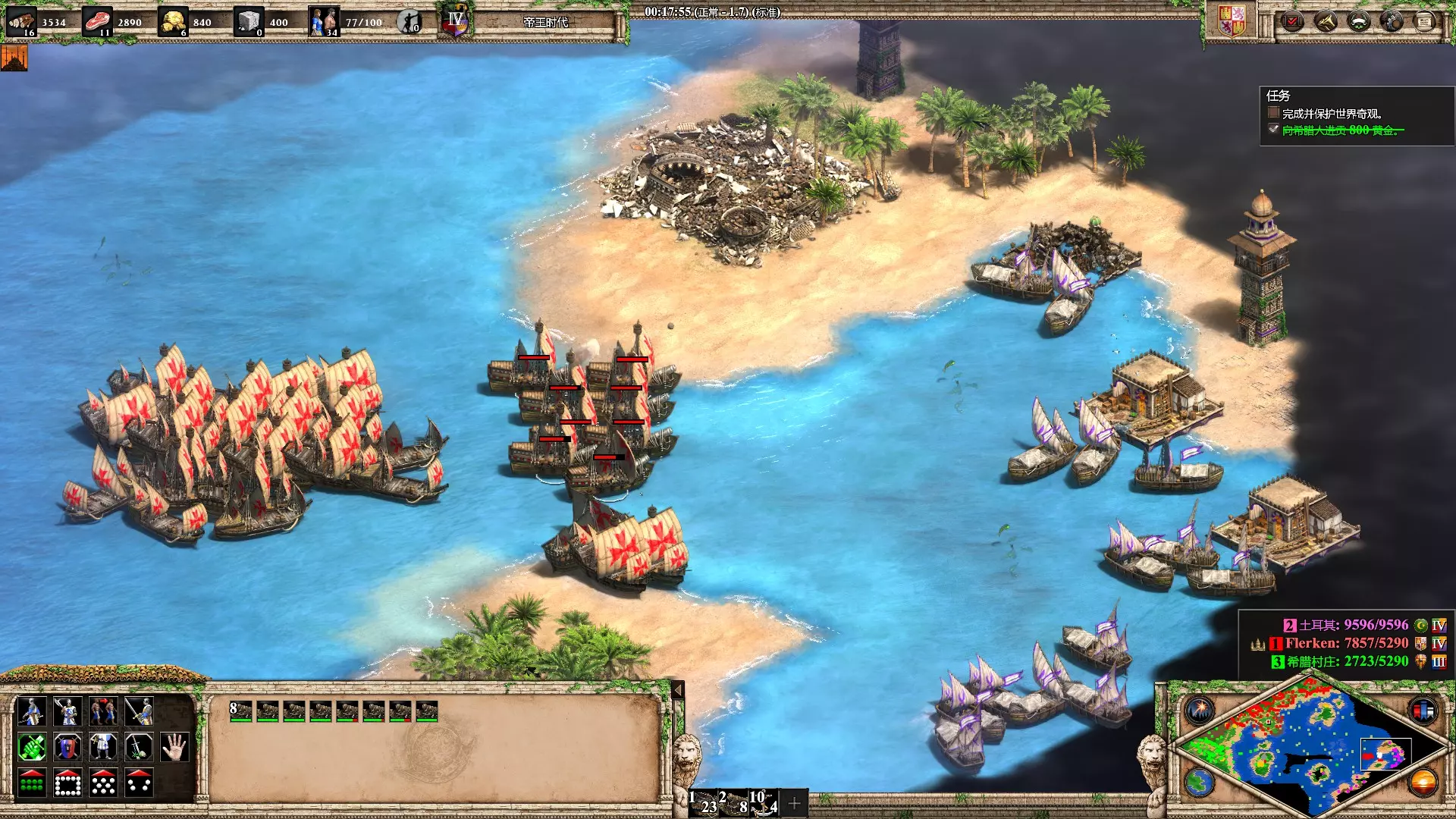 D之日(D即爆破) 用自己的爆破船摧毁一艘敌方运输船 历史战役中的勒班陀战役,开局就送爆破船,敌方港口里全是运输船,直接全员怼过去