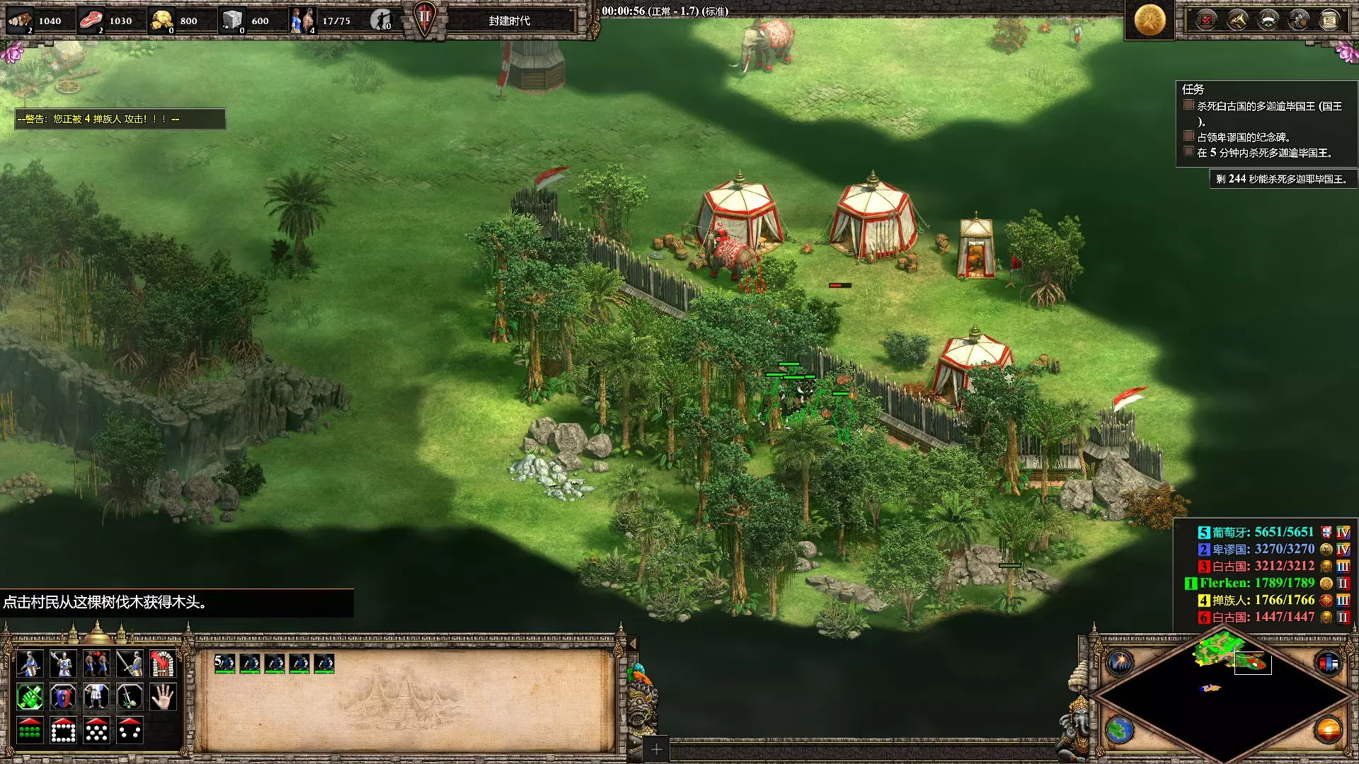 王权争逐 在第一个莽应龙任务【饿虎扑食】中,在前5分钟内杀死多迦耶毕国王 利用开局几个飞镖骑兵摸到如下位置打破木墙截杀国王