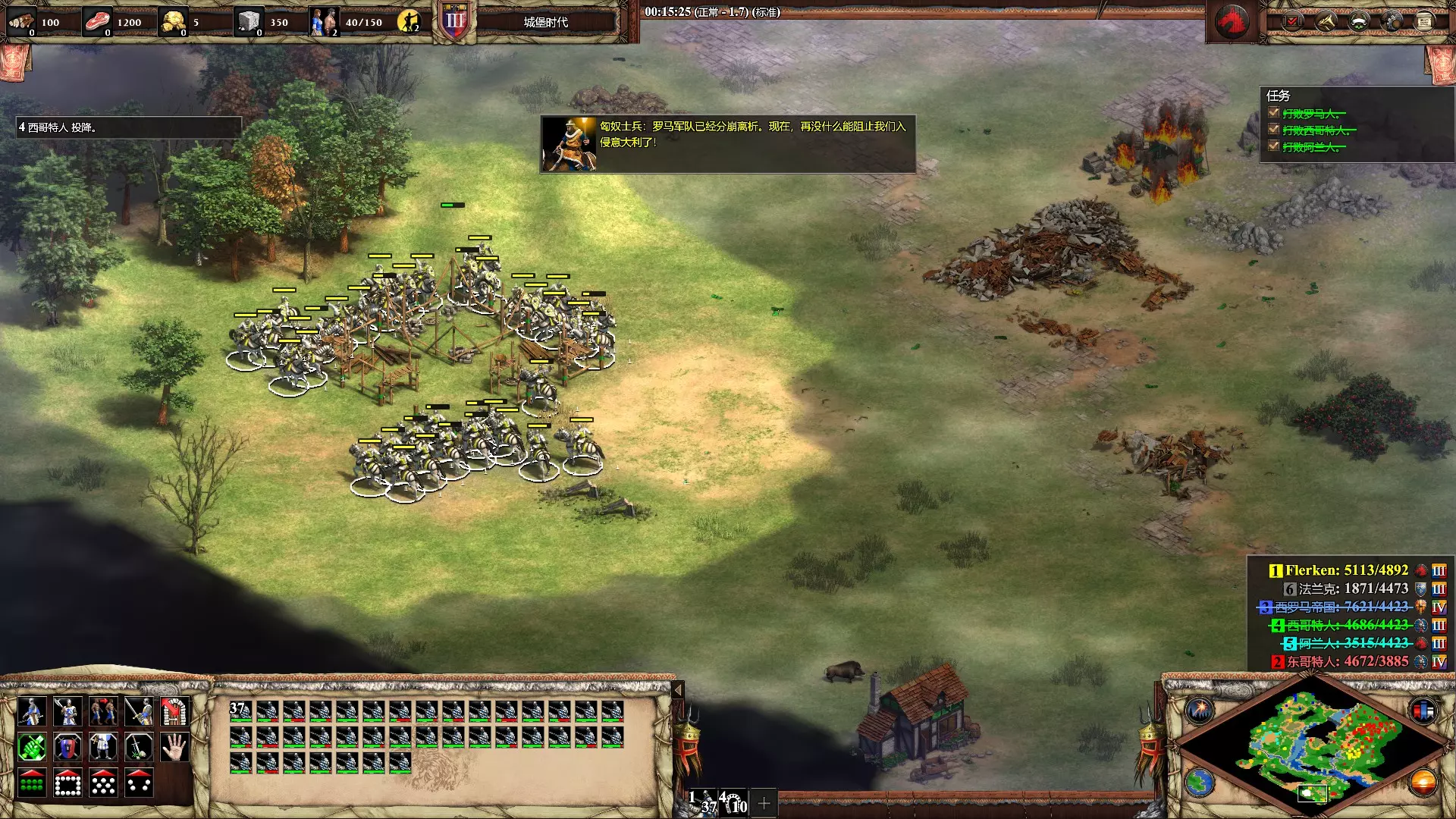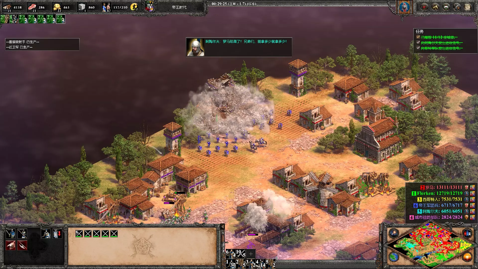 顺便吐槽下谜之AI,如小地图所示,直到战斗结束青色盟友的大部队仍然在城外游荡,完全没有帮上一点忙,攻下罗马后倒是第一个吵着要抢东西…
