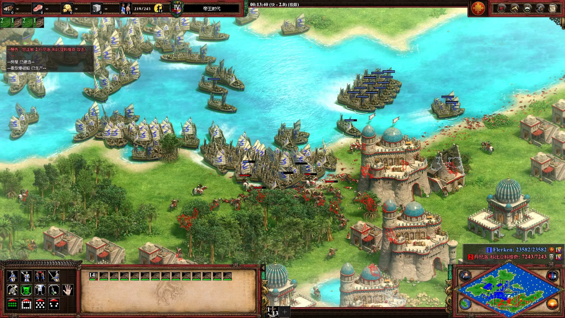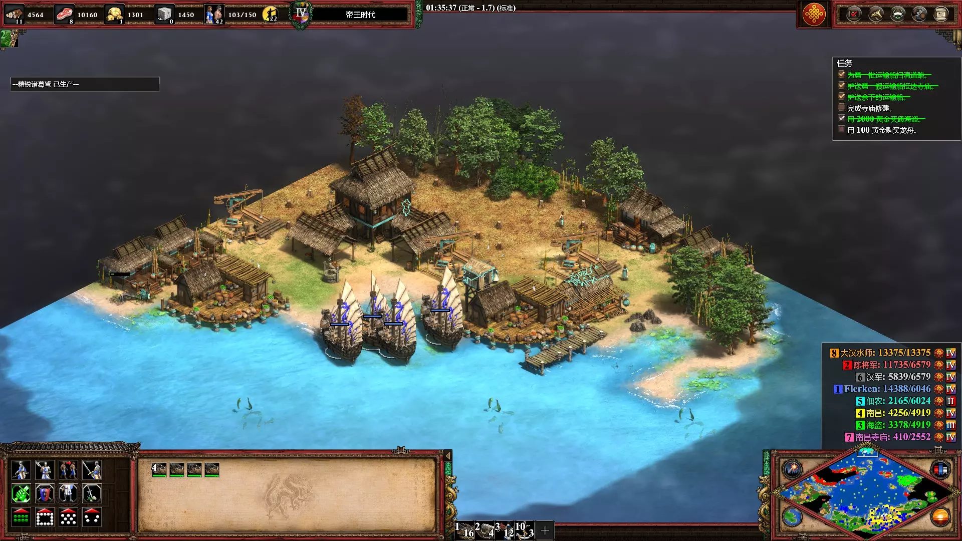 轰隆巨响 用爆破船杀死1000个敌方单位 标准游戏选择岛屿地图,中国(爆破船强化)对阵库曼(弱海战,无炮舰),极限难度,后帝王时代,无限资源,开启加速模式,多建造几个船坞爆兵即可。