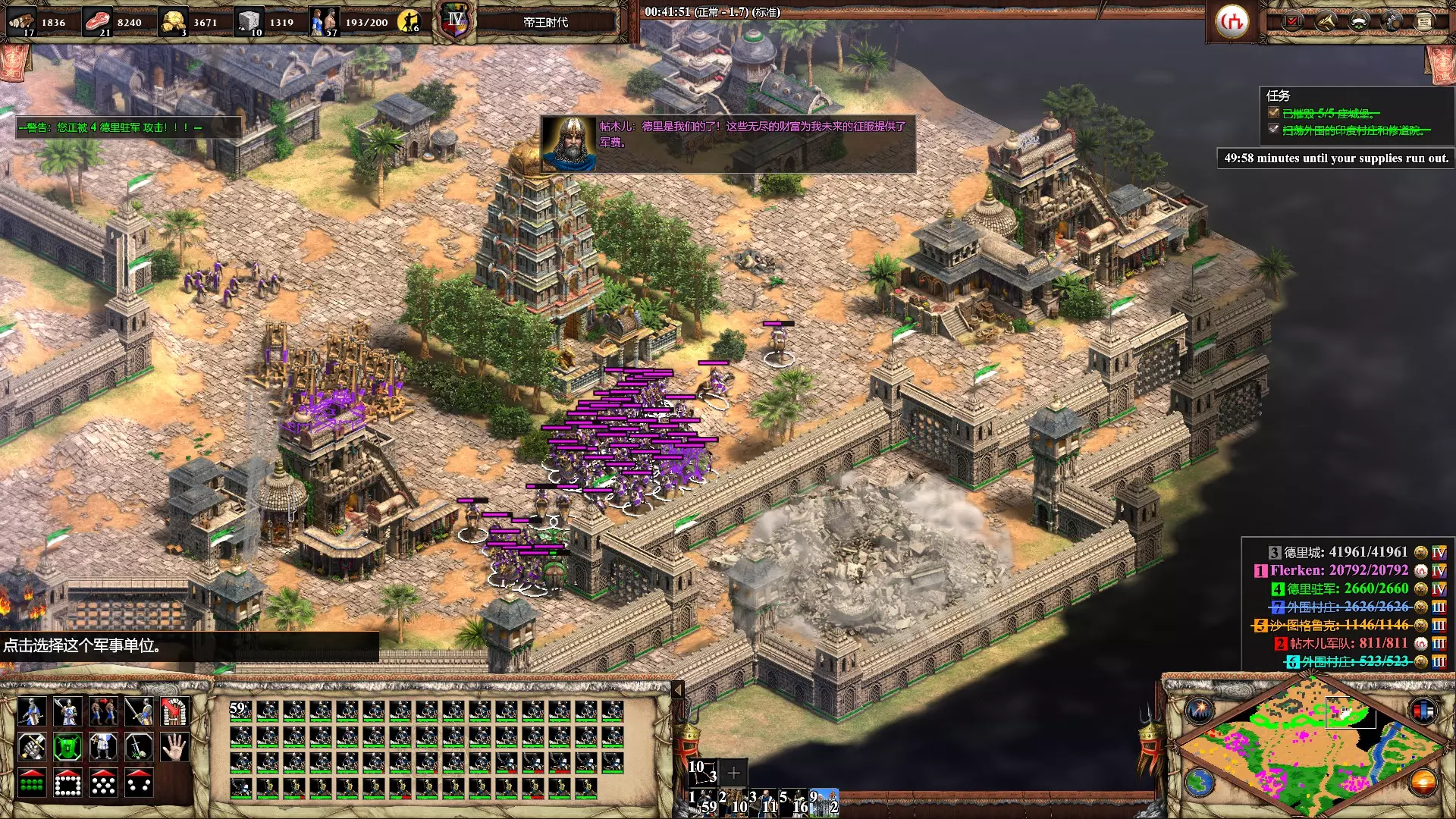 野火燎原 在第四个帖木儿任务【印度斯坦的苏丹】中,在倒计时结束至少5分钟前征服德里。 标准难度正常游玩即可,时间非常充裕,我完成时还剩余50分钟。