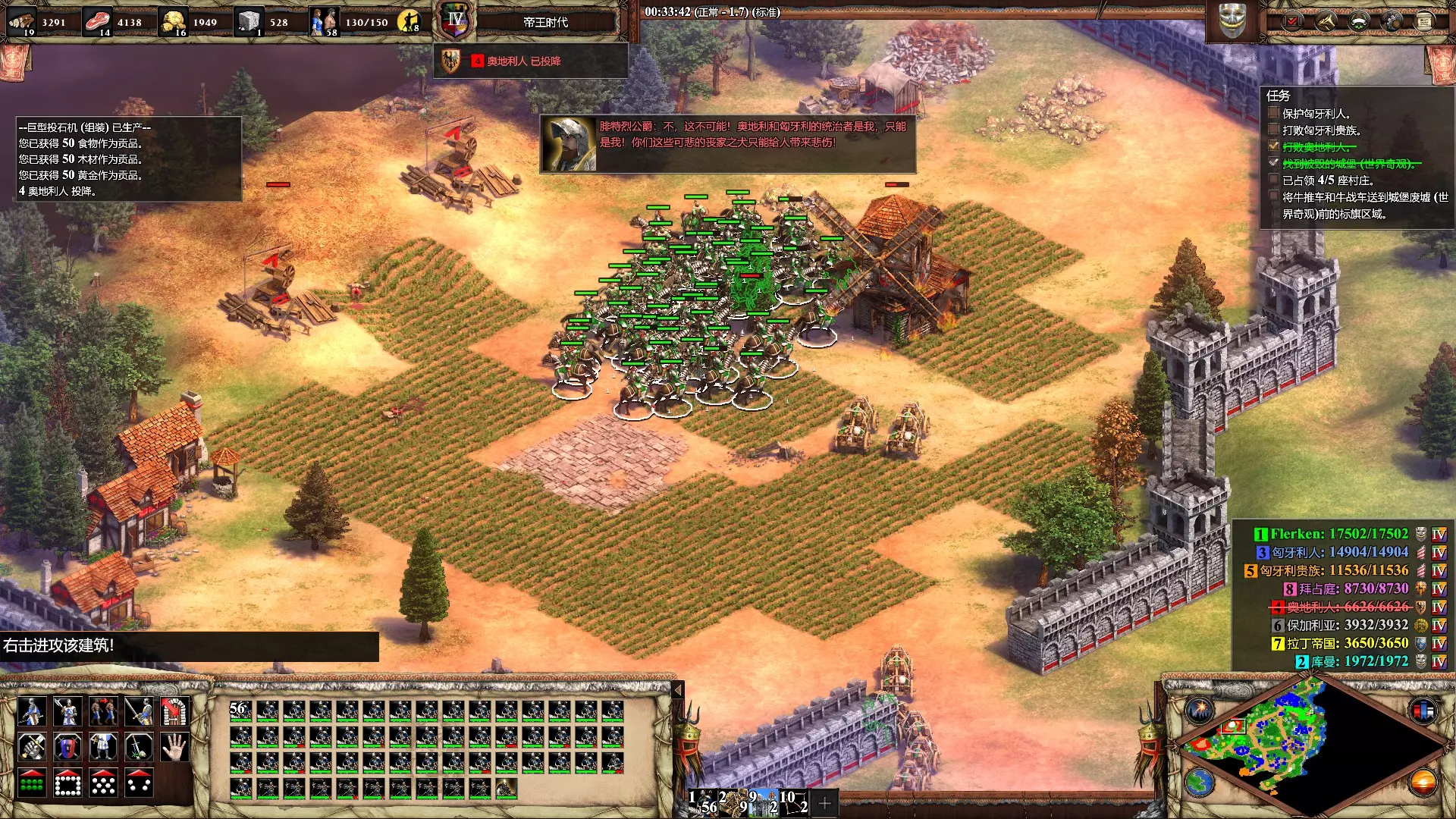 哈,您在干嘛? 用答刺罕骑兵烧毁200栋建筑 文明选匈奴,1v7“极易”难度AI,后帝王时代,资源无限,胜利条件征服,开启加速模式,多个城堡爆特殊骑兵直接进攻即可