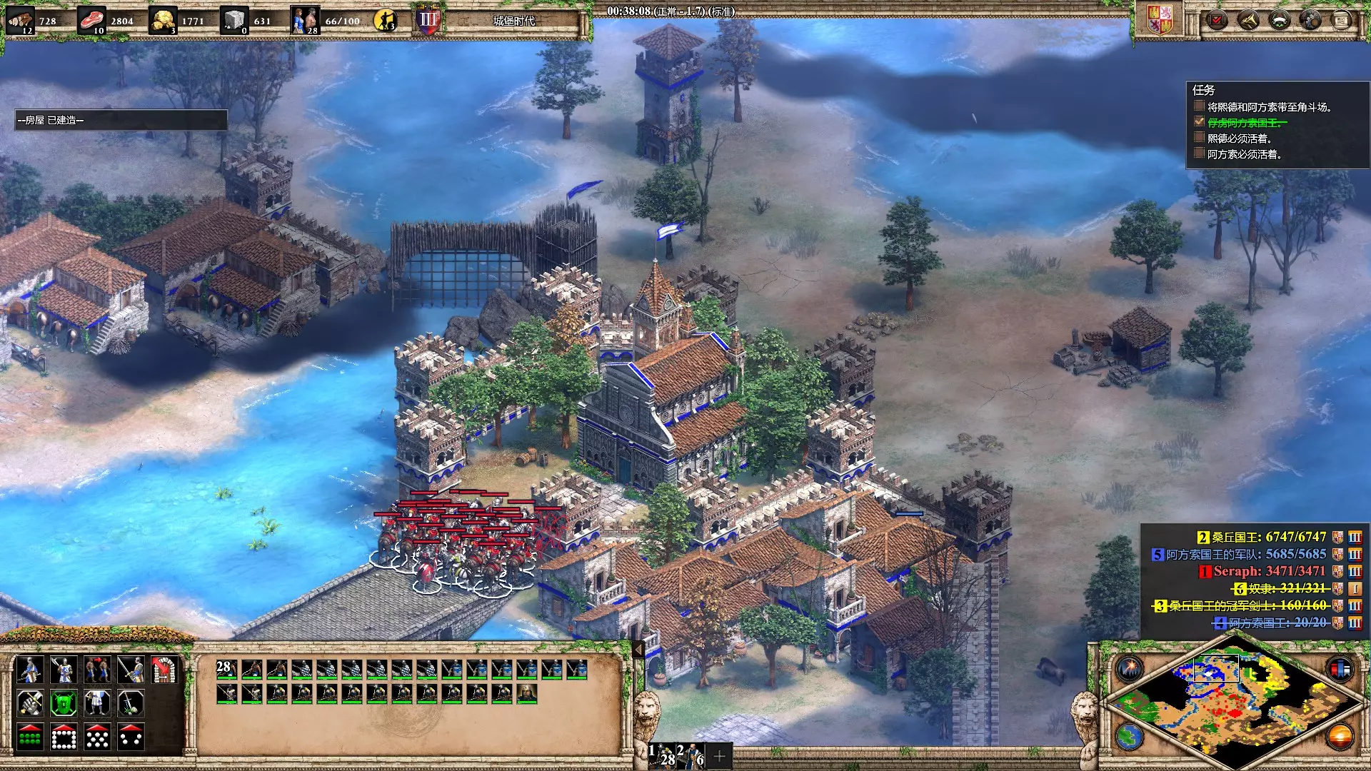 如雄狮怒吼 在【难】难度中赢得第五个松迪亚塔任务【深入虎穴】 开局尽快把北边的桥封住,然后迅速发展海军登陆造城堡扫平敌军