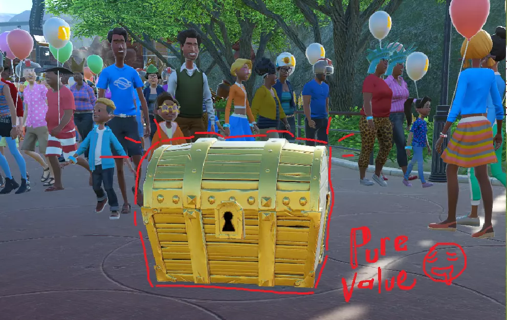 据我观察,评分由游乐设施的声望和公园的景观共同决定。如果你遵循上述优化策略,应该能接近目标评分。 当你有足够资金时,在公园各处大量放置价值10,000美元的宝箱应该会有所帮助。记住,只有靠近路径或游乐设施的景观才会被计入评分,所以确保它们不要放置得太远。 Money Spinner 达成每月10,000美元的利润 随着你完成其他成就,这个成就应该会相当容易达成。如果你的公园运营良好且已优化,但该成就仍未解锁,可以尝试停止研究项目并降低贷款还款额。你还可以在公园财务选项卡的收支平衡页面中查看最大的资金消耗项。有些商店难以盈利,所以可以考虑摧毁它们并解雇员工,切断他们的主要收入来源,为了利润无情地让他们陷入贫困(不必感到内疚,这只是个模拟游戏。现实生活中没人会这么做)。 你做到了! 希望你现在已经达成了完美的100%!干得好!给自己点个赞!给自己来点好东西犒劳一下!你做到了! 感谢阅读我的指南!这是我的第一个指南,我其实不太清楚这一切是怎么运作的。 如果我遗漏了什么,或者你知道获取成就的好技巧,或者你喜欢这个指南并想打个招呼,欢迎留言。