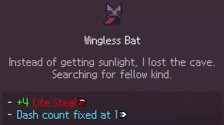 2. 无翼蝙蝠 解锁条件:成功完成5次献血事件。这些事件会在你探索地牢时随机出现(较为稀有,所以看到时至少要完成以解锁该服装)。