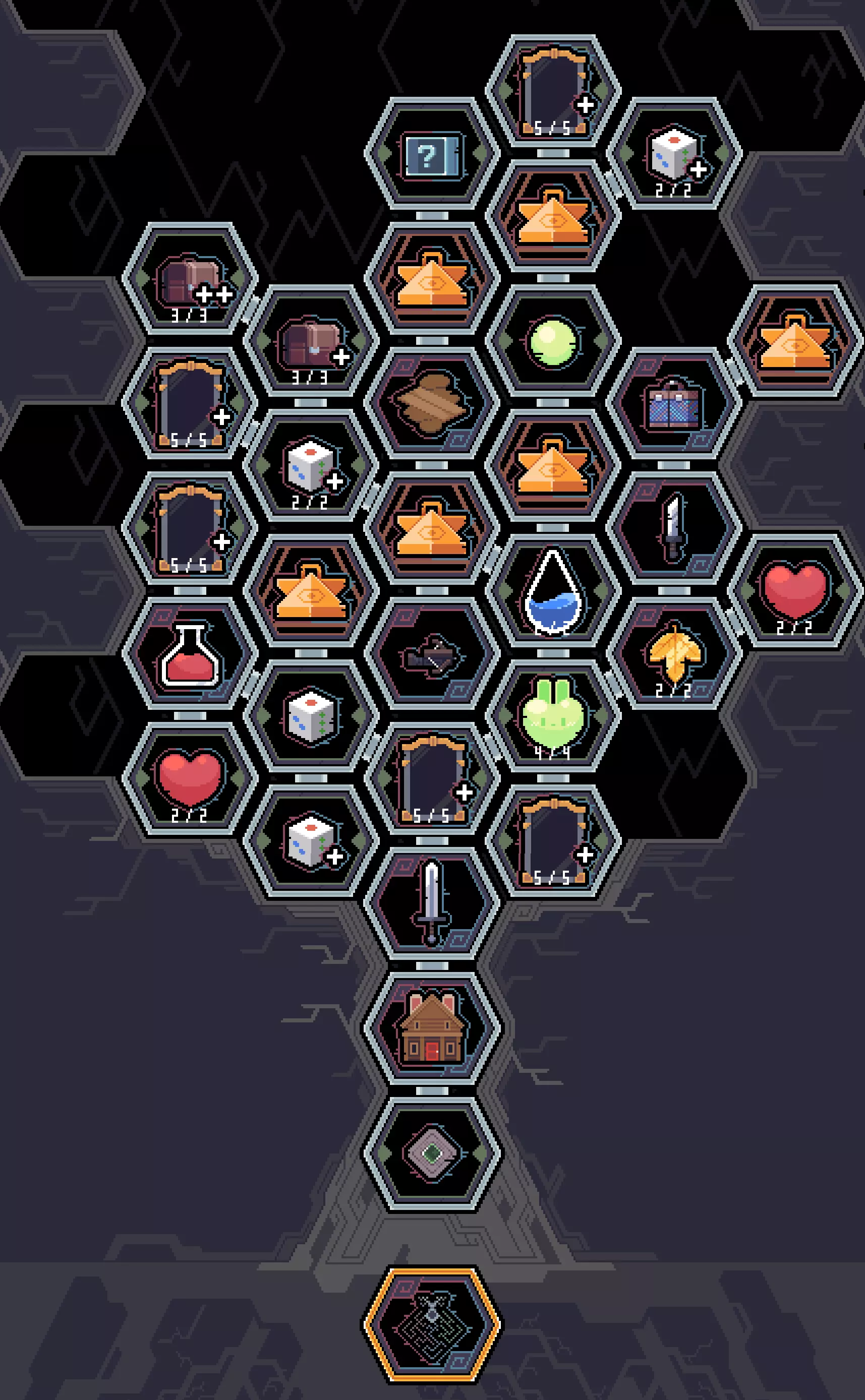 此节点允许每位玩家花费2颗蓝宝石获取3件新的商人道具。之后你可以重随道具以获得新的道具组,每次重随的花费会翻倍(4、8、16……)。 多人游戏:每位玩家的操作和花费都是私密的。所有人都使用自己的蓝宝石来获取自己的道具。 奇迹(根源) 根源是一个独特的节点,在地下城仅出现一次。每次探索可获得一个奇迹。此节点不会与商店重叠,且没有额外选项或随机事件,也没有战斗房间。 以下是游戏中18个奇迹的列表。请注意,选择奇迹所获得的道具通常是随机的,可能并不总是与你选择的特定奇迹在主题上一致。 更新0.7。现在可以通过Esc->日志->奇迹查看所有奇迹