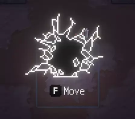 找到一个隐藏房间。房间可以通过检查墙壁找到,其中一些墙壁上有裂缝。靠近裂缝并击打,就会打开隐藏房间并出现一条信息。你可以在下方截图中看到墙壁上的裂缝(顶部)和隐藏房间。它并不总是在房间底部,所以要仔细寻找。