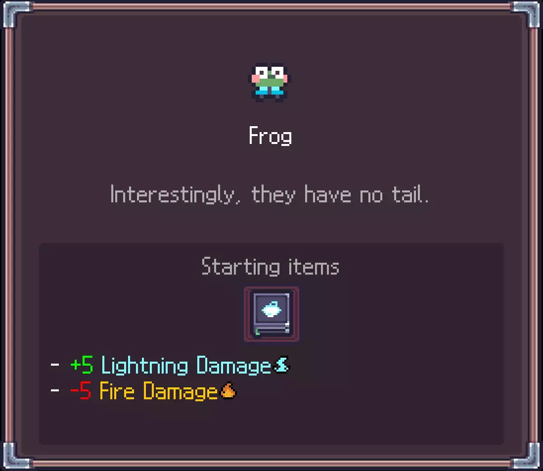 青蛙 将你的闪电伤害提升至50⚡。(将闪电伤害特性提升至50,可在【特性】中查看)