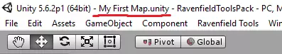 要导出此关卡,请点击“Ravenfield工具 -> 地图 -> 将开放场景导出为地图”。你会收到一条关于正在ExampleScene中操作的警告,暂时忽略它并点击确定即可。导出过程随即开始,完成后你将看到“导出完成”的提示消息。恭喜,你刚刚导出了你的第一张地图! 创建你的第一张地图 - 创建地形 让我们创建一张新地图。最简单的方法是从示例场景开始,因此首先加载该场景(你可以在Scenes/ExampleScene.unity中找到它)。我们通过保存该场景的副本来创建新地图,所以点击“文件 -> 另存场景为...”。将你的新场景放在Scenes文件夹中,并命名为“我的第一张关卡”。我们可以通过查看编辑器的窗口标题来确认新场景已打开。