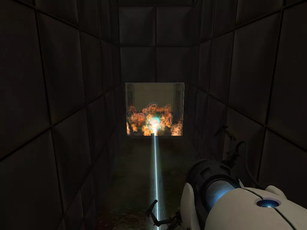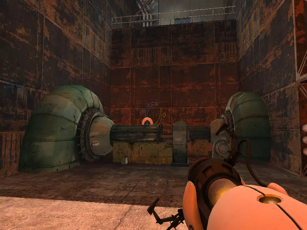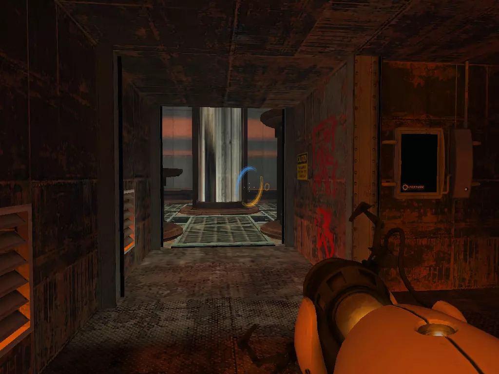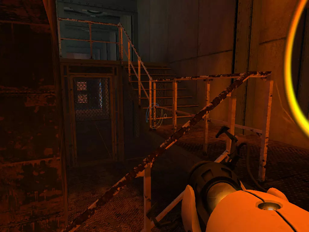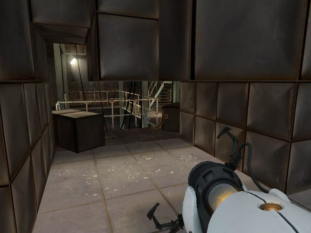 在到达火箭炮塔之前,我们从下方继续前进。这条短途路径的尽头有一个带活塞平台的小房间。玩过《传送门:序曲》的玩家肯定记得这个房间。我们可以在那里接收到信号。