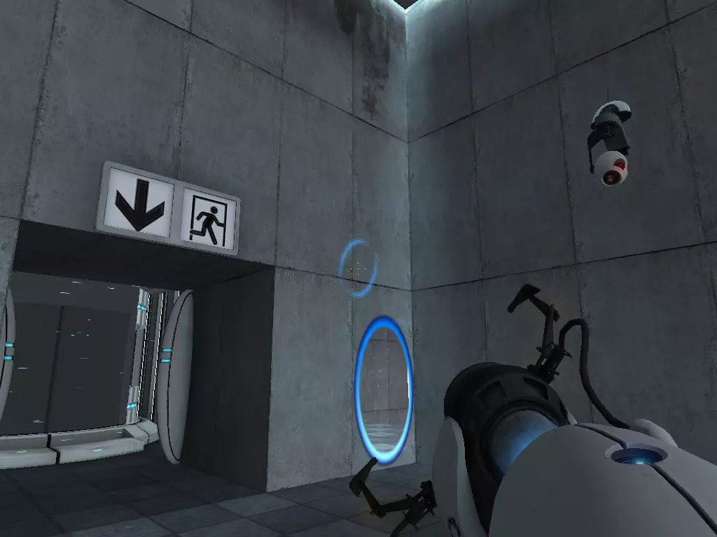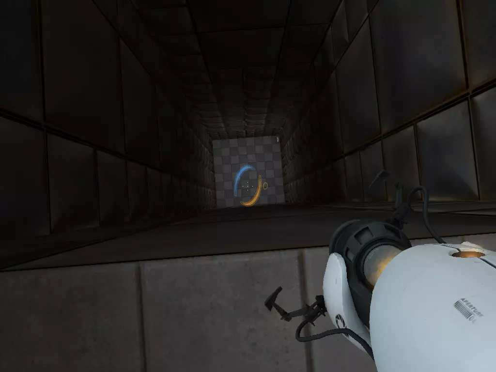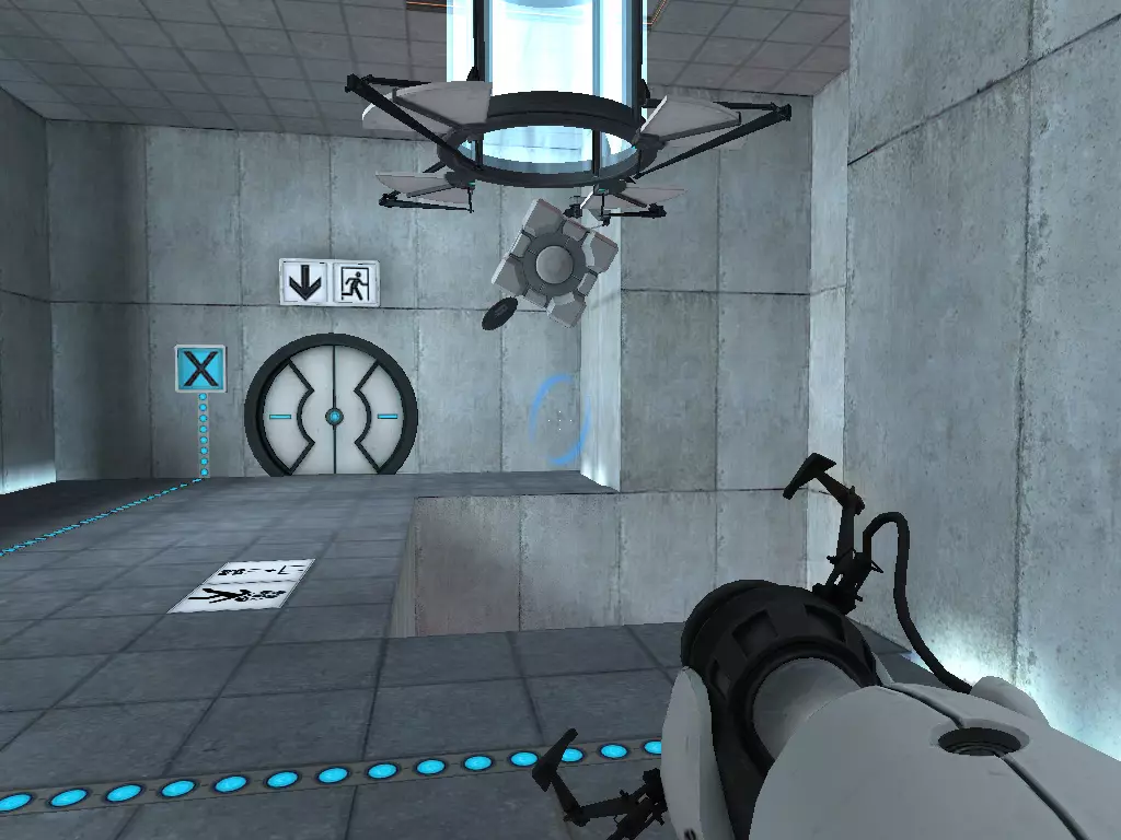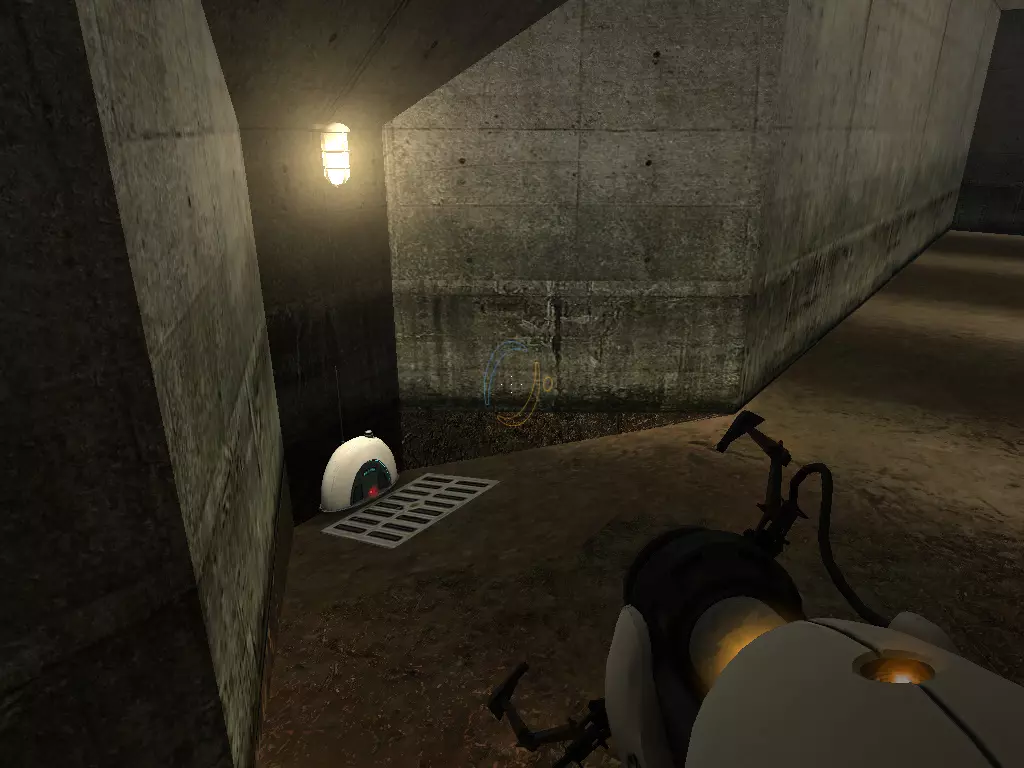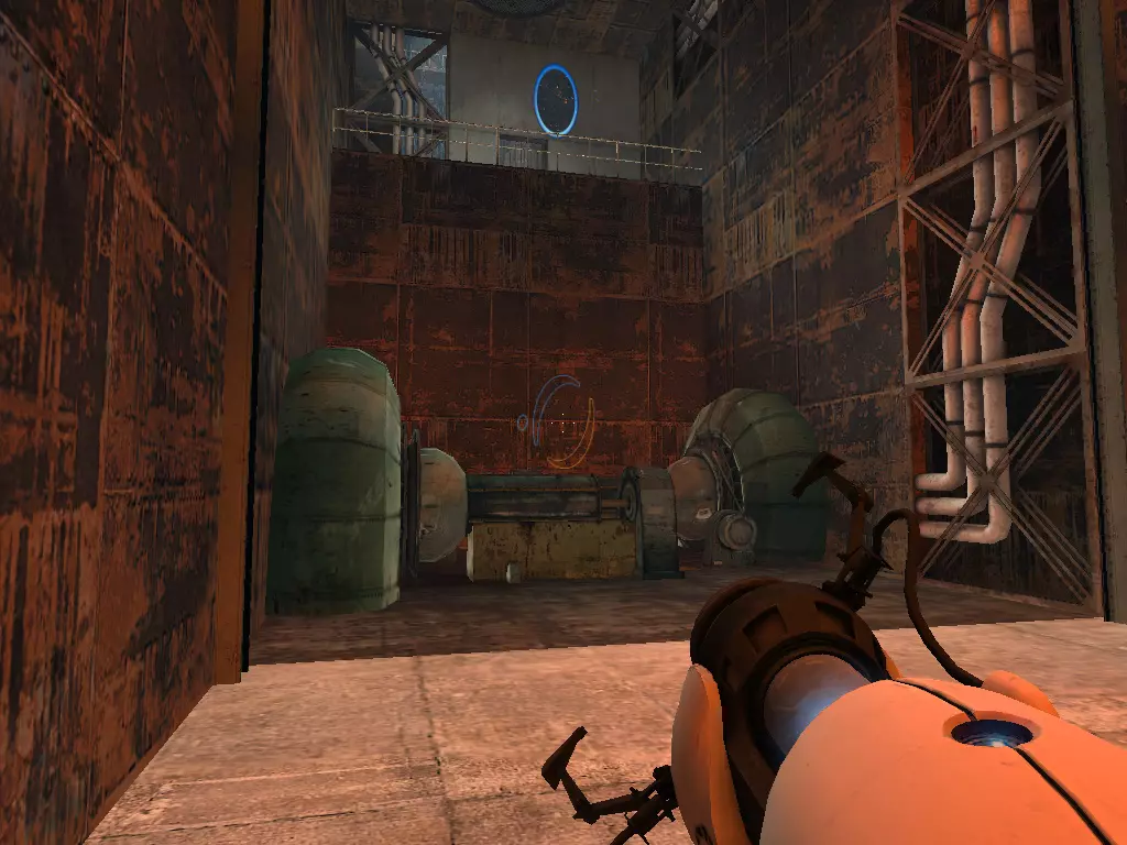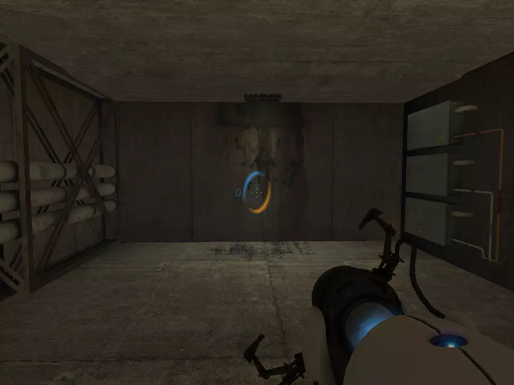 在到达火箭炮塔之前,我们从下方继续前进。这条短途路径的尽头有一个带活塞平台的小房间。玩过《传送门:序曲》的玩家肯定记得这个房间。我们可以在那里接收到信号。