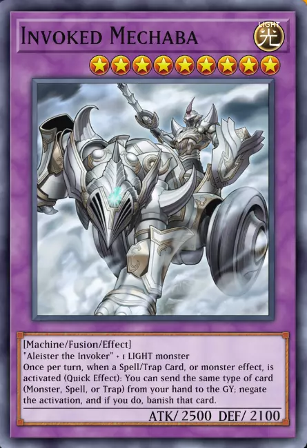 融合怪兽的卡牌边框为紫色,文本框中有关键词“融合”。注意在其关键词和效果文本之间会注明一些内容,这些是召唤该融合怪兽所需的融合素材。以我们的强大怪兽【召唤兽 梅尔卡巴】为例,你需要【召唤士 阿莱斯特】和任意光属性怪兽作为融合素材。 和其他怪兽一样,【召唤兽 梅尔卡巴】也有属性、等级和类型,分别是:光、9星、机械族·融合。召唤兽 麦查巴仅有一个效果,具体如下: - 每回合一次,当魔法卡、陷阱卡发动或怪兽效果发动时,你可以(即你可以选择不发动此效果)将一张与正在发动的卡类型相同的卡送入墓地,以此无效其效果并将其除外。换句话说,如果你想无效一张魔法卡,你必须在手中有一张魔法卡才能将其送入墓地;同样,如果你想无效一张陷阱卡或怪兽效果,你必须在手中至少有一张相应类型的卡才能将其送入墓地。 简单来说,召唤兽 麦查巴的效果就是每回合可以无效并除外一张卡。简单来说:) 需要强调第二行括号中的内容(Quick Effect)。什么是快速效果?这意味着它可以在任何时候使用,包括在对手的回合。 5 - 卡牌类型(第二部分):怪兽(同调、超量、灵摆和连接) 好了,现在可能要稍微跳出“老式游戏王”的圈子了 5 -> 这是一张同调怪兽(Synchro Monster):