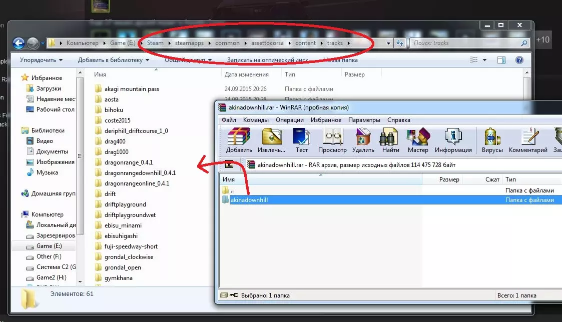 5. 【cars】文件夹用于存放车辆相关的模组。 【tracks】文件夹用于存放赛道相关的模组。 例如,当我们想要安装知名赛道“秋名...”时,按照1.2.3.4步骤操作,将赛道文件拖入tracks文件夹即可。