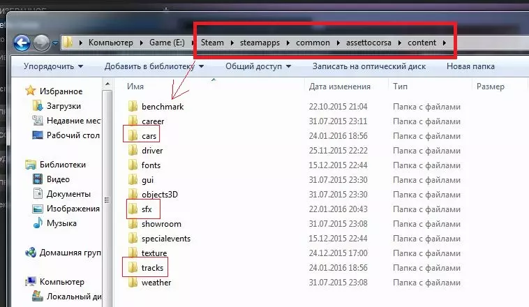 4. 在打开的文件夹中,该文件夹路径为……Steam\steamapps\common\assettocorsa,进入“content”文件夹。