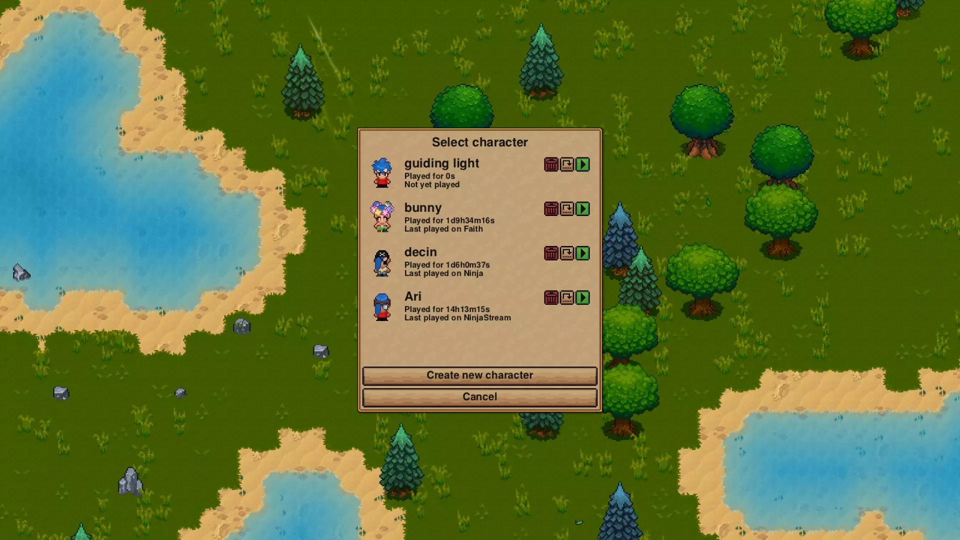 那么你已经创建并选择了你的世界,接下来他们会问你想玩哪个角色。好在他们会告诉你这个角色上次游玩的世界!这真的很有帮助!