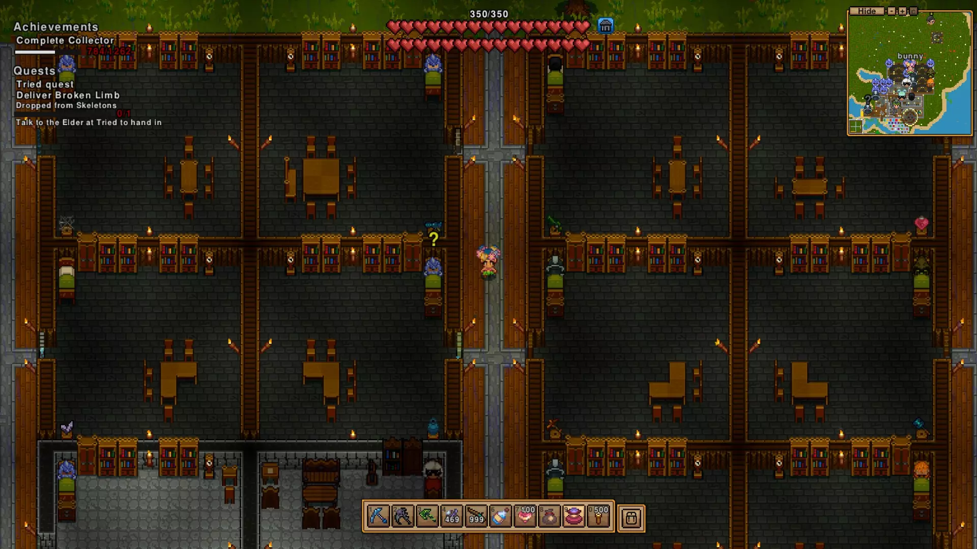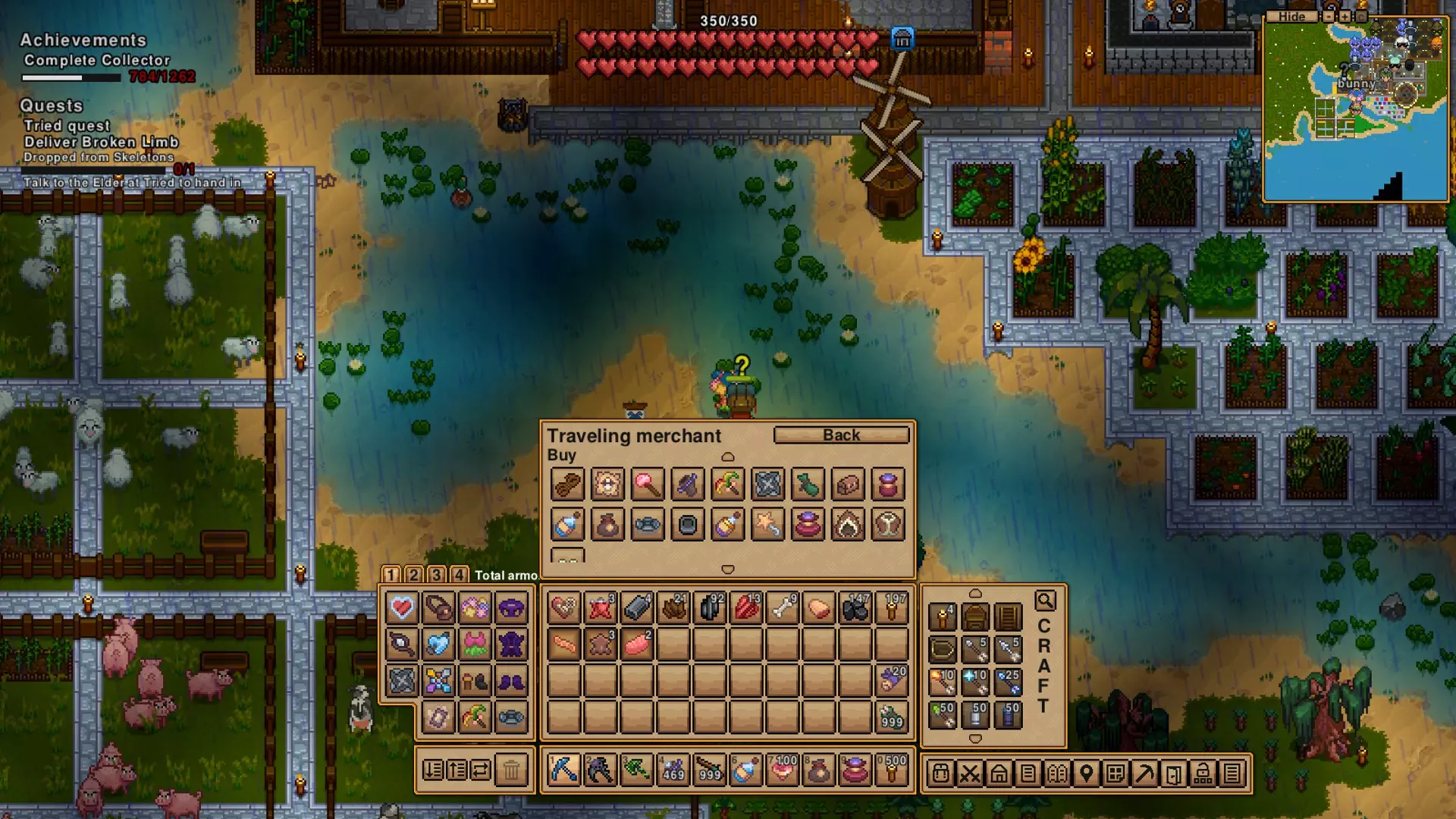 I am working on getting every set of clothing... this toon refuses to make furntiture items, so i only have as many manaquins as i have found in the pirate villages. the toon not making furniture is a thing i have chosen for myself to humor myself. its not an actual limitation. GRAVE DIGGER in forest and plains caves there are stone rooms that have vampires (who can turn into bats) and if you break items in those rooms you can get loot as well as this achievement. SAFETY LAST this one i happened across by accident. You will find levers all around underground, and switching them normally makes TNT go boom nearby, sometimes you are in range.... unless you are paying close attention, you might not know that in time. HEADHUNTER you should totally invite people to live in your settlement. ..... they can be quite demanding and I will explain more detail about that... but getting someone other than an elder to join you, some how, will pop this. TEAM WORK After inviting someone to live with you, most are willing to join your team and help you fight. COMPANION FOR ADVENTURE there are a handful of pets... like penguins, who will happily follow you around wherever you will go, pointless little things if you don't count the cute factor. buying their summon item seems to be a thing, i normally kill them until they just drop it. VILLAGE HELPER the annoying i mean great elder asked for your help and you did the thing, YAY have an achievement and hopefully useful item. FIRST OF MANY so you killed a boss... good job, maybe kill it a few more times so you get all the loot, and btw, there is a lot more bosses... most you want to kill multiple times for loot. Now there is 20 things you can get within the first hour or two, with three being passively gotten in the background. **It takes several types to make a village So you want to get the achievement COMPLETE HOST? Cool, there are some NPCS that are harder to get than others... Also, everybody has to be on the map at the same time, if someone is off map for any reason, it wont pop until they come back home. Most of the NPC types will visit your village and you can recruit them that way. But that is not the only way. You can choose to let the NPCs take whatever armor and weapons from storage so they can be as up to date as you own gear. I will post what I know about recruiting them. OH, and maybe don't have a summoning item in your hand when you try to talk to them. If you hit them to many times they will do everything in their power to kill you. The order is the order my game has them in. They seem to be grouped by type. Some NPCs sell stuff. I dont know all the ones that do. ELDER ~the quest giver who does what he wants, which is to defend the area you set. First off, you are always, ALWAYS gonna have an elder. I think I have seen some of my pawns become the new elder when the old one dies. But I haven't tried to confirm this. The elder is gonna lead you to go to each biome, then each cave, and then each deep cave, before randomly sending you places. There are specific items you will get for killing bosses, like bottles that send you places, a hoverboard mount, and a few other really nice items. btw, if you put your quest item, ammo bag, or coin pouch in your void pouch/bag, you have to take it out to use it. The random quest that he gives have a few different rewards, but there is 4 trinkets that he can give out that will combine into a really nice one. I have only gotten two so far. FARMER ~ this guy spreads the poop around okay, so the fertilizer is made from plants and stuff, not poop. but your farmer will spread the stuff around where you tell them to BLACKSMITH ~ hi Perrin i really only got this one for the achievement. MAGE ~ why are so many trapped in the dungeon? You can buy magic books from them to make an achievement, they will enchant your stuff with random buff instead of using the scrolls you find with very clear buffs written on them. They might also curse your item, so you waste more gold enchanting it again. I know i have seen them in the snow village, but freeing them in the dungeon means you get them for free. I feel really bad for these guys, which is why i have FIVE. and just refused to free more, why cant you set them free without them joining your village, yeah, you could banish them after, but that feels so mean. ARTIFICER I can confirm that you can get this by using a scroll as well as a mage. The scroll actually lets you know what you are getting! HUNTER ~ happily runs around killing all the cute stuff on the map this guy, who was my last (and hardest to find, wtf?) recruit, wants gold, wool, and leather normally to join your village. They are almost always on your starting island and will walk in your town like they belong to your village which is why i thought i had one. but they hunt and provide free meat for your village. yay? GUNSMITH ~ sells things that go pew pew! recruited for the achievement ALCHEMIST ~ prob thinks liquids in a bottle are cool i haven't interacted much with this one outside of recruiting them. ANGLER ~ here is someone who is way to interested in fishing this guy will fish around your island, providing free meat for your people to cook and eat, it makes them really happy to have this. I believe you can also pay him to go fish for things for you, because fish is how you MAKE some of the potions in the game, i really should be utilizing this more... I guess now is a good time to talk about the 2 fishing achievements? There is a late game rod that will cast 2 lines at once letting you get DOUBLE CATCH there is also MORE THAN A HOBBY where you fish up a total of 500 items, i do not know if this account wide, i assume so, and i think its how many items come up, not how many times you have fished and caught items. I have been working on other stuff to much to really try to get this one. PAWNBROKER ~ wanna make coins while getting rid of stuff? this guy shows up randomly, and wants to be impressed by how big you