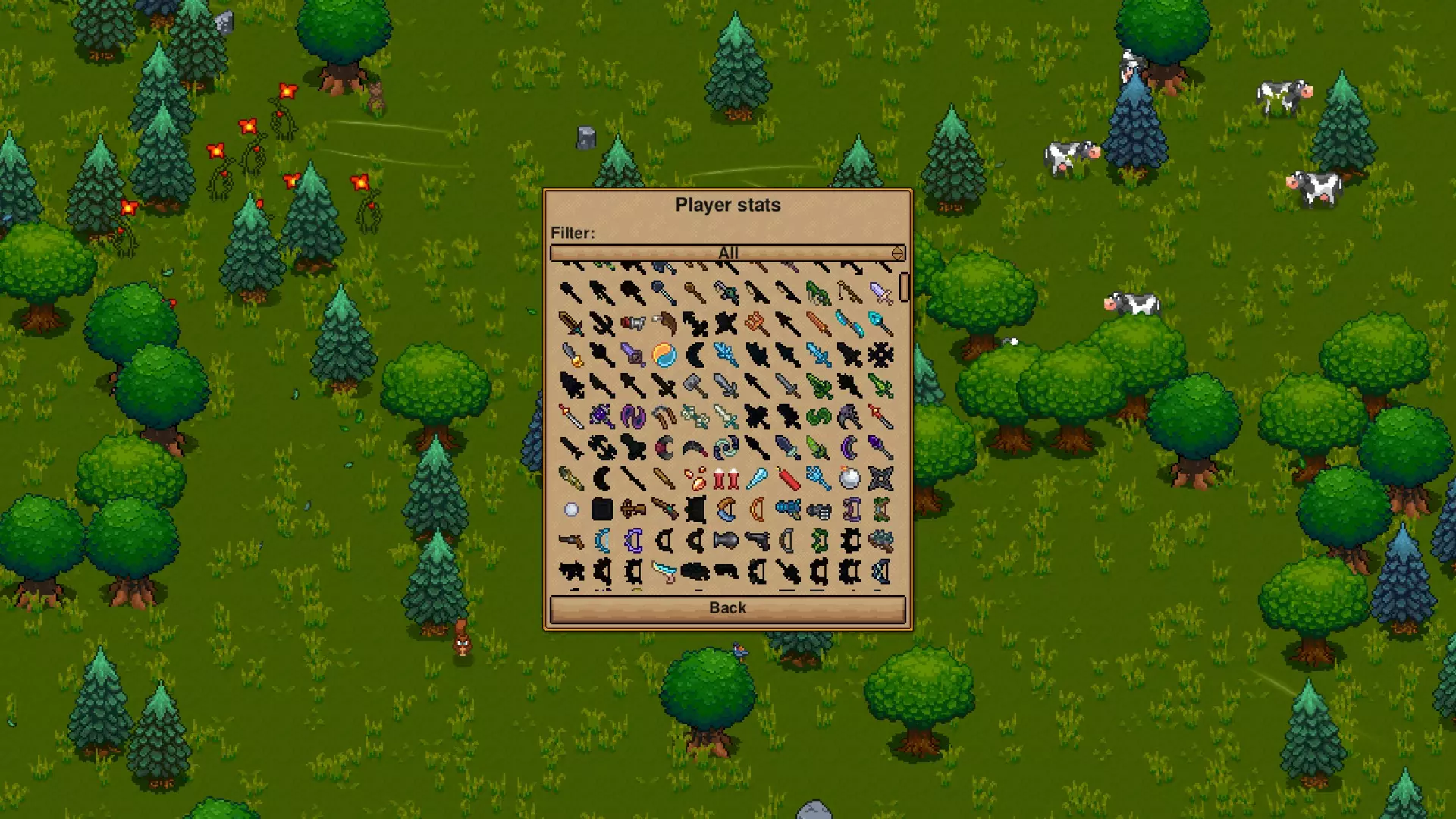 this is also not the bestest screen grab, but on the priorities tab you can set specific settlers to prefer to do certain things. if it has an x its not gonna do a thing, - mean whatever, ^,^^,^^^, is 1-3 of i wanna do it, number 3 being i'm gonna make sure this gets done. there is a v,vv,vvv, 3v means they are gonna avoid it like a someone having a boring project assigned to them, anything but that, please, anything but that, someone else will do it right? defend is a blue overlay and shows the area that if something hositle is in the area they will fight it if they can get to it. the other two are things i haven't played with and I dont want to give bad info. **Some stuff about bosses First lets spend just a bit to talk about the bosses, its easy. Each biome has a few bosses, and they seem to each have their own little special attack or thing about them. How, when, and where you can spawn them is pretty important. Though you can use the spawner MANY TIMES to fight a lot of them at once, get that loot faster! as long as you don't die. There is a very short cool down between using spawners. TO EASY - when you can kill any boss in less than 30 seconds is a thing. ONE TAPPED - at some point youre gonna be able to kill a zombie in just one hit. MAGIC DROP - i dont remember who, but someone drops stuff that lets you expand your trinket slot, while someone else drops something that lets you have more armor sets to choose between. in your journal, it will say who drops what, and if they haven't dropped it yet, there will be an outline. the forest biome, first one you are recommended to fight, can only be spawned on the surface of a forest/plains at night. It will escape if you do not kill it before morning. in the snow cave you can accidently crack the egg open and spawn the spider, or you can use eggs you find to spawn it desert cave needs to try to pix the statute (or use the spawner) desert deep cave you need a spawner and to be at the alter DODGE THIS - beat the fallen wizard while 5 fallen dragons are alive, I needed someone to comment that this is just a normal boss. My summons would kill the dragons as soon as spawned so i didn't know. after you beat sage and grit a path leads down, while fighting the wizard he spawns multiple dragons... ignore them and keep at him, maybe heal or up def to pull it off. swamp I think i've only ever used the spawner, never accidently doing it. you have to attack the wizards to wake them up REMATCH - when you kill that guy. Pirate - I know I talked about him briefly before, but he's tech a boss, and there is two achievements from him. WASHED UP - you beat him. GETTING HOT - he drops a deep ladder that you are gonna need to get to the deep caves, this is something you can make, or you can just kill more of these guys to get more. ---- for incursions, you put the tablet in the alter, go through the alter, follow the instructions, a second portal opens to summon the boss with x amount of attempts to beat it, it should drop loot that includes a tablet for the next level, since tier 5 garb is stuff you want for some achievements... this is a bit important. TAKE IT TO THE NEXT LEVEL - this is gotten when you leave the portal and hit complete on the incursion. MASTER OF SUN AND MOON - beat these guys at level 5 or higher. i cant beat moon at three yet 2 achievements I haven't gotten yet that best fit hereYOU AND WHAT ARMY - have 10 villagers in your armor all wearing tier 5 armor. i am working on getting 10 full sets ME AND THIS ARMY - beat an incursion boss with only your villagers fighting for you. ..... i kinda want to get this after getting the one before. **Melee, Ranged, Magic, or Summon, you decide. Another section that doesn't really have a wrong answer. And since you can have several armor sets to click between by late game, how much are you really deciding? btw, every extra set you get will make you naked with nothing. I would recommend buying multiple hoverboards once you can, or whatever your fav mount is. You are also going to need multiple sets of armor, cosmetics, and trinkets... only your weapon and tools get shared between all sets. The first recommended boss drops 1 of 4 trinkets at a time, that all four together gives you bonuses to call classes, just one will penalize you using any of the others. As someone who plays a sword swinging summoner from the moment I can buy a brain on stick from the traveling merchant, I try to fight boss 1 as many times as i can that first night for the loot. if you hover over an helmet, it will tell you what perks you get for wearing it's set, more damage, click a button for something to happen, I honestly only look for anything that gives me + to summons, so I don't pay attention. This is why I am working on the ruby version of CRYSTALLIZED because i know that ruby helmet says more summons. you need crystals that seem to only be in the crystal boss area, go figure There is also an achievement called EMPOWERED which is where you acquire a full set of tier 5 armor and put it on. I should have put a counter down for every time i misspell achievement, or just misspell things in general. I got this because I mined a carp ton of upgrade stones and used the table. now on to the weaponsThese guys are labeled how they want to be labeled. Meleedoes melee damage, some weapons want to be charged up before swinging, boomerangs seem to fall in this category, there is a pretty epic punching glove in a box, I like using the Reapers weapon because sure, i swing it, but then a few more shoot out hitting things at a med distance and that can be really nice in some cases... though its not enough to hit sage or grit most of the time.... Rangepew pew b*tches! there is a lot of good bows and guns. not that many kinds of ammo, and omg, you can EASILY fill up your ammo pouch. I now have chest dedicated to each type of arrow, stone and fire fill up fast. Magicyou do not see your mana bar unless you use it. there are wands and books and th