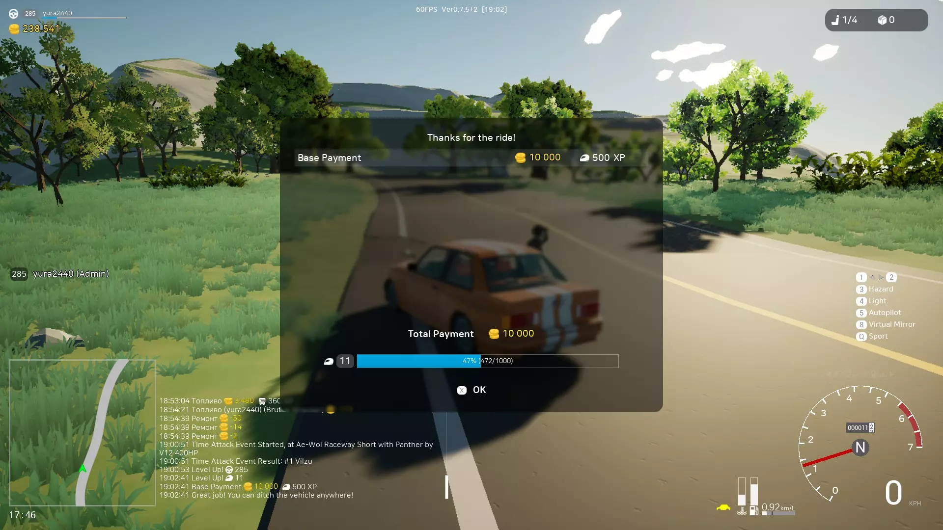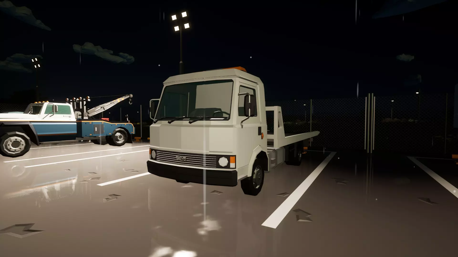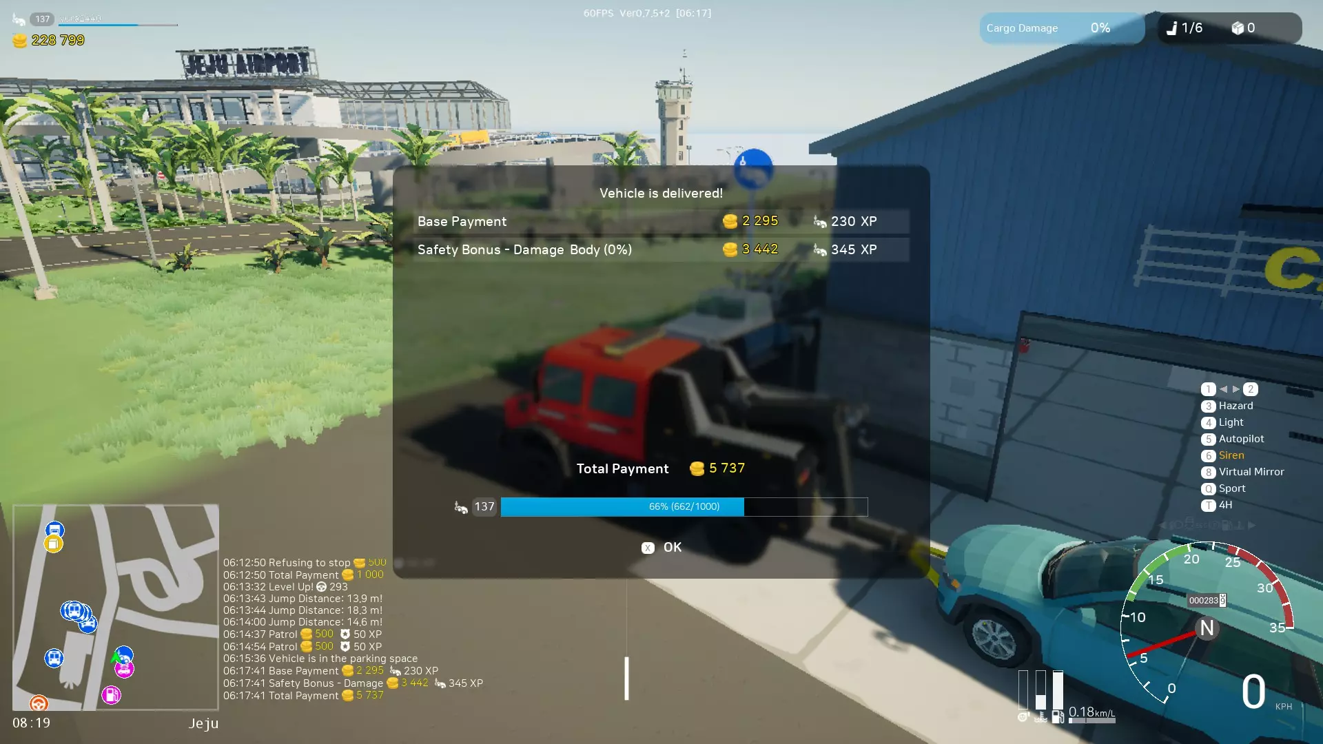 随机出现在道路的某个位置。通常它是完好无损的,但有时会有轻微损坏。 你的任务是将其捡起并送往最近的维修中心(会自动显示引导标记)。 此类运送的平均费用约为5-10k。 2. 汽车运送工作(汽车在拖车上)。