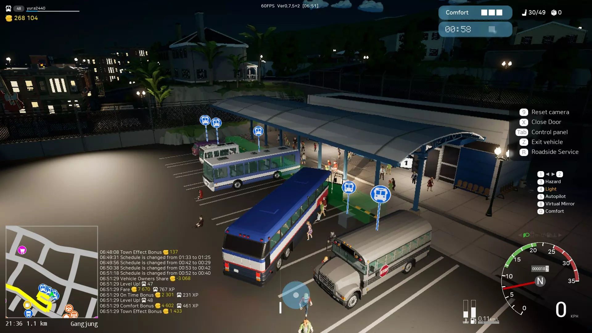 在游戏中,你可以开设自己的公司并获得被动收入。前往市长办公室即可开办公司,之后你可以添加公交车,这些公交车在AI的运营下会为你赚钱。公司免费开办,但你需要购买公交车。每辆公交车都需要维护。你会收到公司公交车状况不佳需要维修的通知,维修费用为100金币。如果不维修公交车,它们的利润将会下降。此外,司机(AI)会收取工作费用,但金额较少(取决于交通工具)。公交车的收益不高,例如一辆60000金币的公交车每小时大约能带来1000金币的收入。也就是说,要让公交车回本,大约需要60小时的游戏实时时间。经过数次更新后,巴士开始能带来更多利润。此外,利润多少在很大程度上取决于你拥有的巴士类型以及它们所运营的路线。 0.7.9版本更新内容: 1. 新增了添加卡车运输特定货物的功能。 2. 增加了5个额外槽位,但需要付费解锁。每个新槽位的解锁价格会上涨50k金币,初始解锁成本为50k金币,最终成本为250k金币。 3. 要将拖拉机加入公司,需为其挂载所需的拖车并规划正确的路线。 4. 部分类型的货物目前无法运输,例如披萨,无法按需求配送到指定人员,且路线编辑器中无法设置此类配送点。 5. 若要设置或更改路线,请注意一半的货物将会消失。可以在机器人上使用合约,但你需要自己取货并卸货。我们设定一条路线,为自己和机器人装载货物,一起行驶,到达后挡住机器人的路,从它那里取车,接下合约并交付货物。