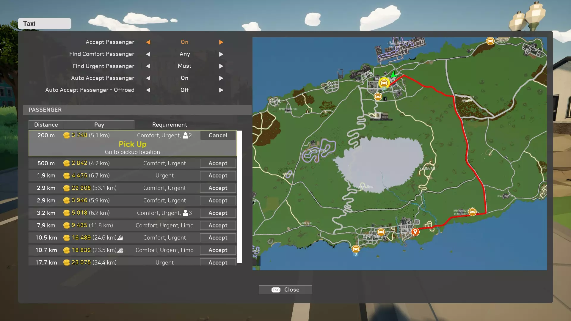 通过此菜单,你可以轻松查看每位乘客的信息,包括:【接客地点】、【目的地】、【行程时长】以及【支付金额】。该面板极大简化了乘客选择流程,无需再亲自上前确认所有细节。你还可以自定义此面板,例如在搜索中排除需要快速或舒适出行的乘客。 普通乘客与精英乘客: