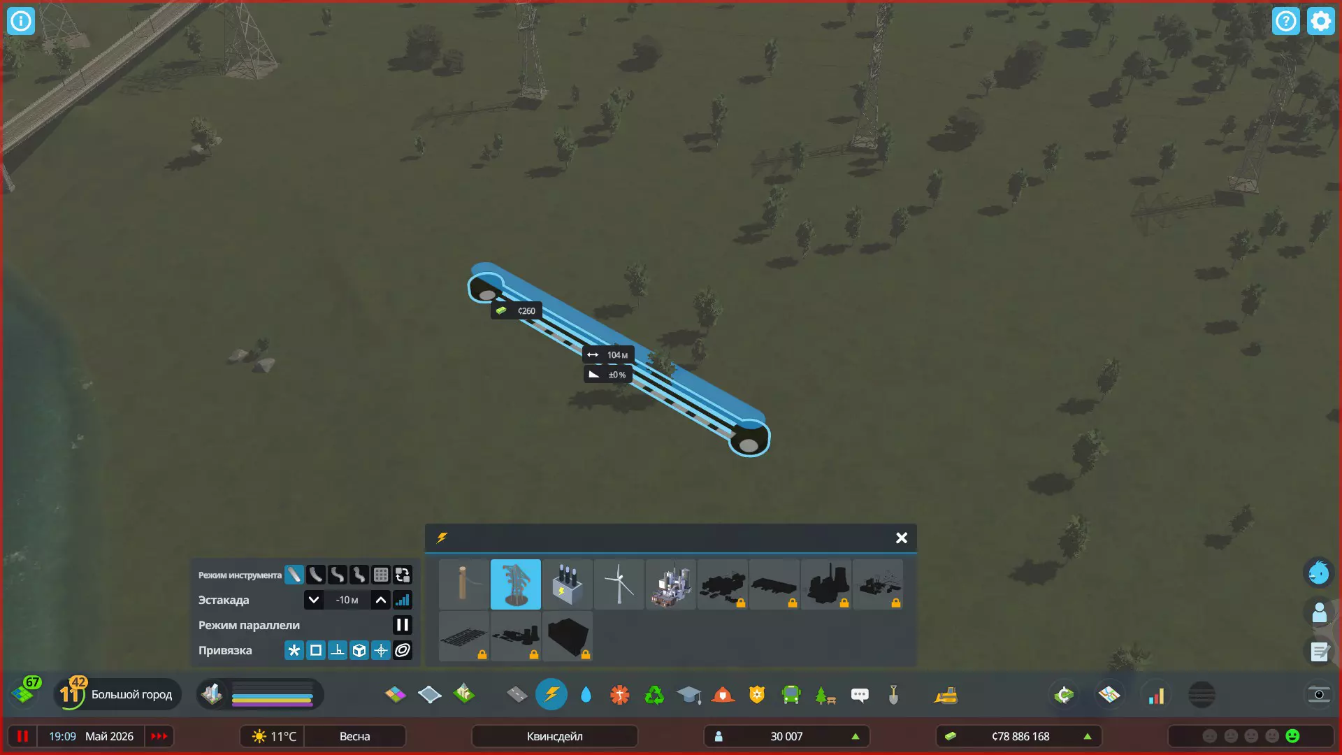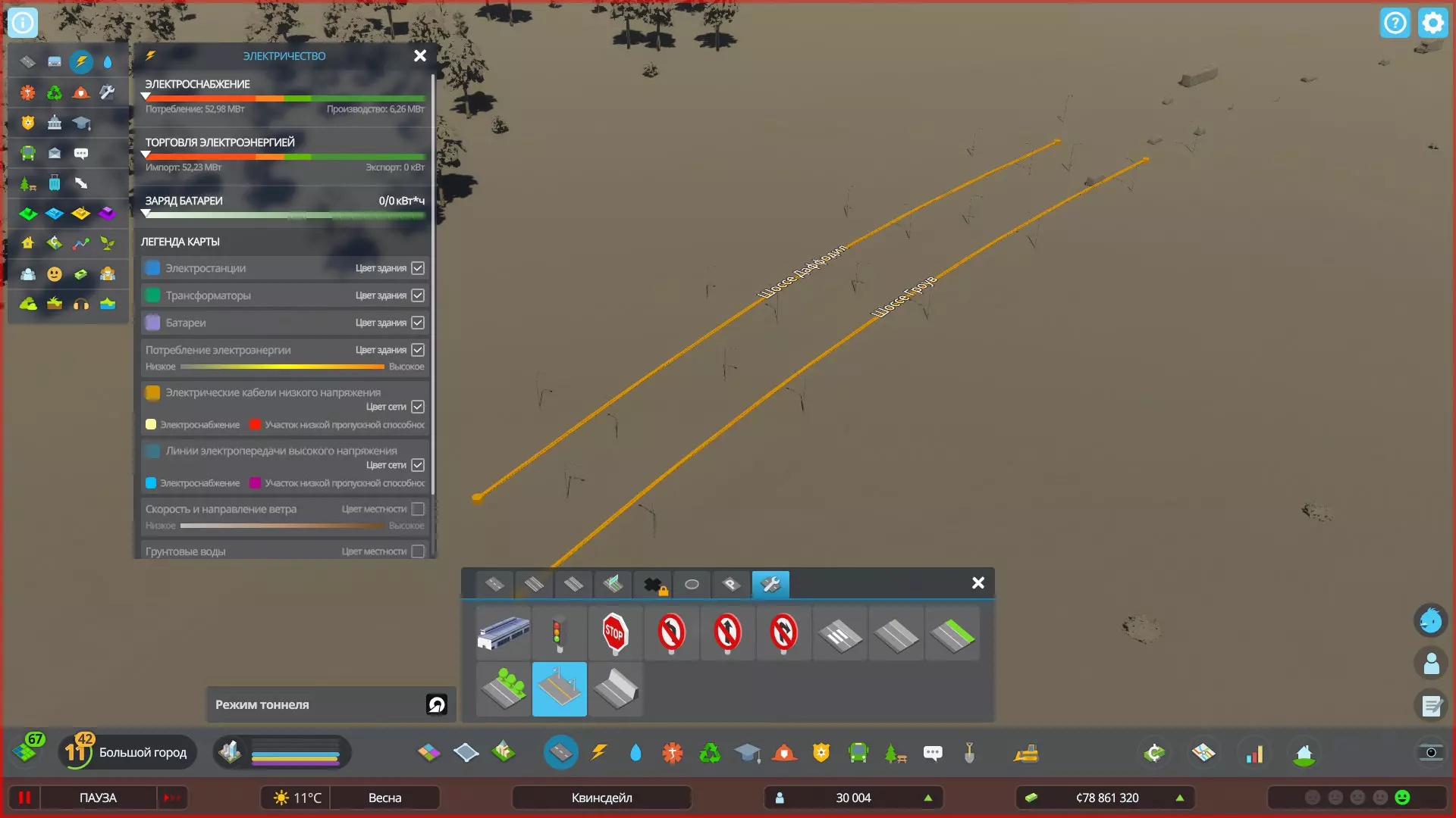 低压线路容量限制 低压输电线路仅能输送有限的电能(40兆瓦)。随着城市的发展,部分区域的电力需求会不断增加,此时低压线路可能无法满足这一用电负荷。因此,保持城市电网均匀且不间断的电力分配至关重要,必要时需建设变电站。 冬季来临时,居民会开启取暖设备,城市电力需求将急剧上升,夏季居民使用空调时亦是如此。若要查看您当前低压输电线路的容量,需进入屏幕左上角的“电力”信息面板,并将光标悬停在所需的线路部分上。