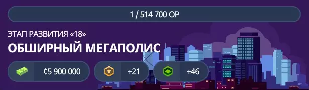 当前阶段您将获得4,400,000资金、15点发展点数以及额外32个扩展许可。额外解锁内容如下: 【贷款限额(1,900,000)】- 解锁贷款功能,可获取最高1,900,000的额外资金。 繁荣大都市(16-19阶段)