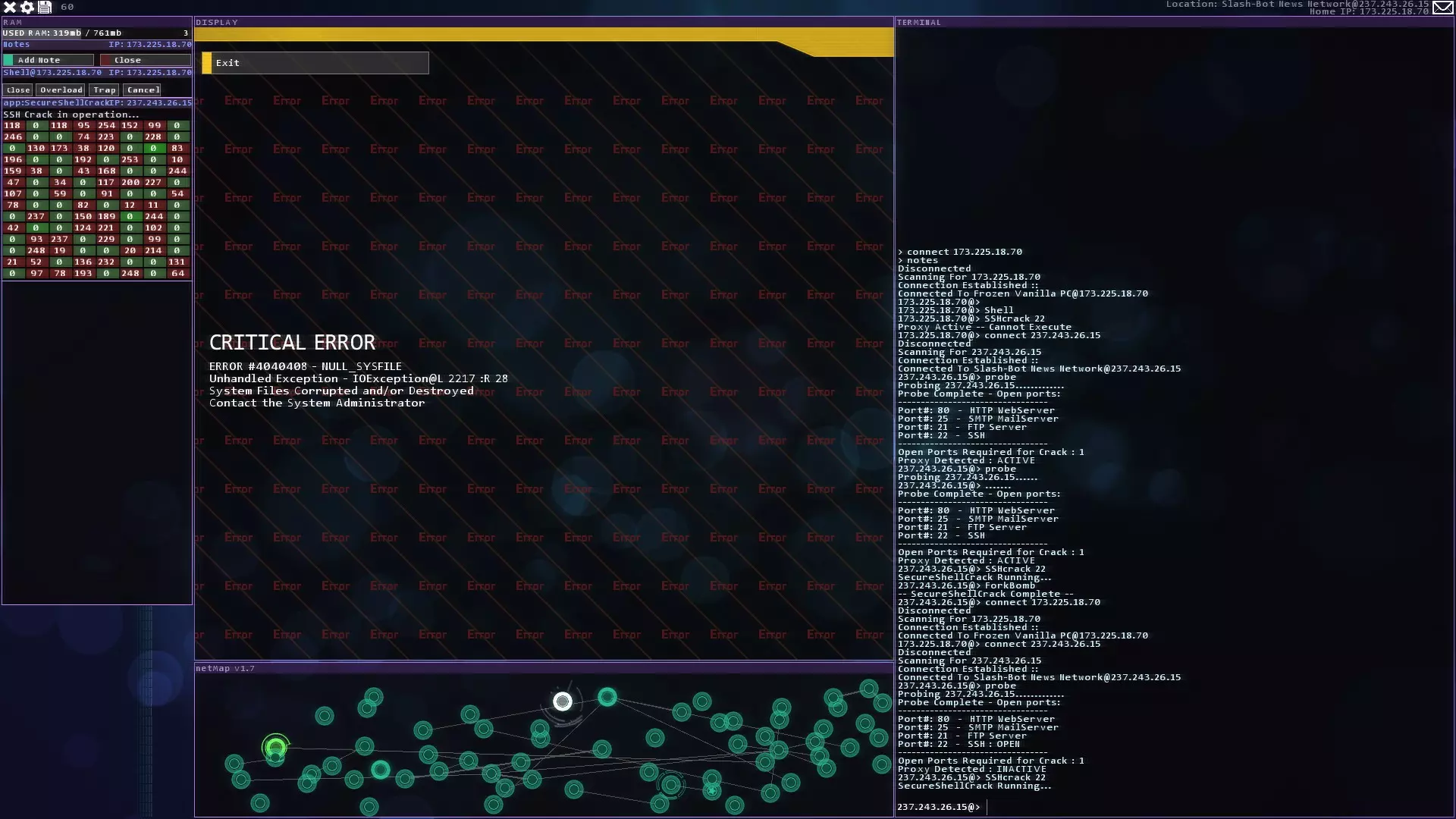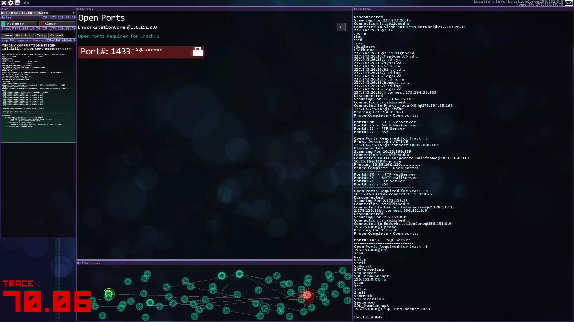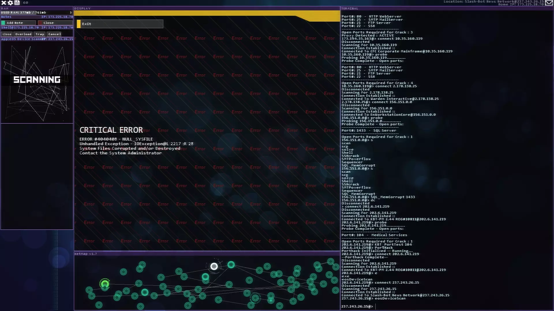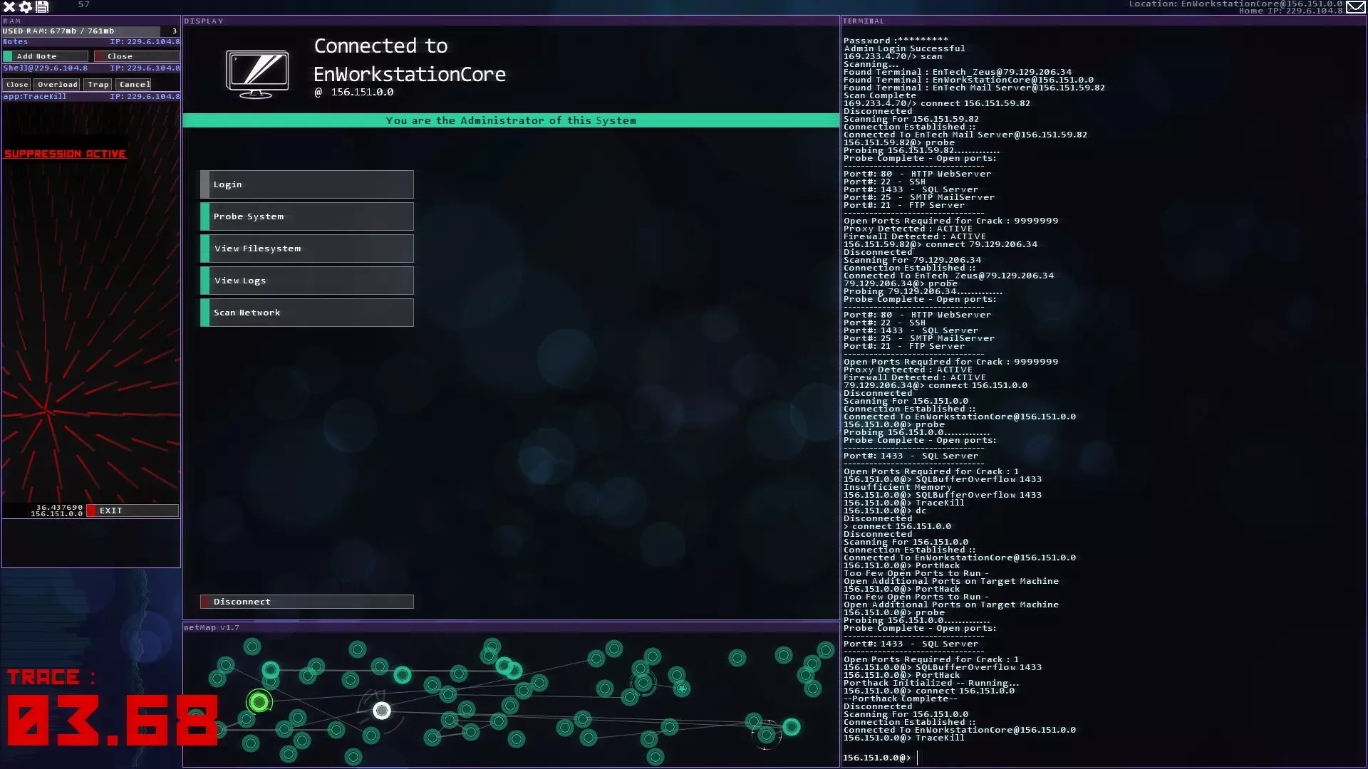 注意:紧急追踪规避序列(ETAS)将在你获得CSEC账户后立即可用 提示与技巧 - 如果你玩黑客网络,在旁边准备好纸和笔。这对后续的一些任务会有帮助。 - 使用多个Shell来绕过某些代理。这会减少绕过所需的时间。记住在绕过代理后关闭它们以恢复你的RAM。 - 像KBT_PortTest和SQL_MemCorrupt/SQLBufferoverflow这样的漏洞即使在防火墙或代理激活的情况下也能执行。 - 使用Tab键而不是手动输入内容。Tab键具有自动完成功能。 - 搜索每个服务器/节点以获取信息或秘密。它们可能会帮助你推进故事线。