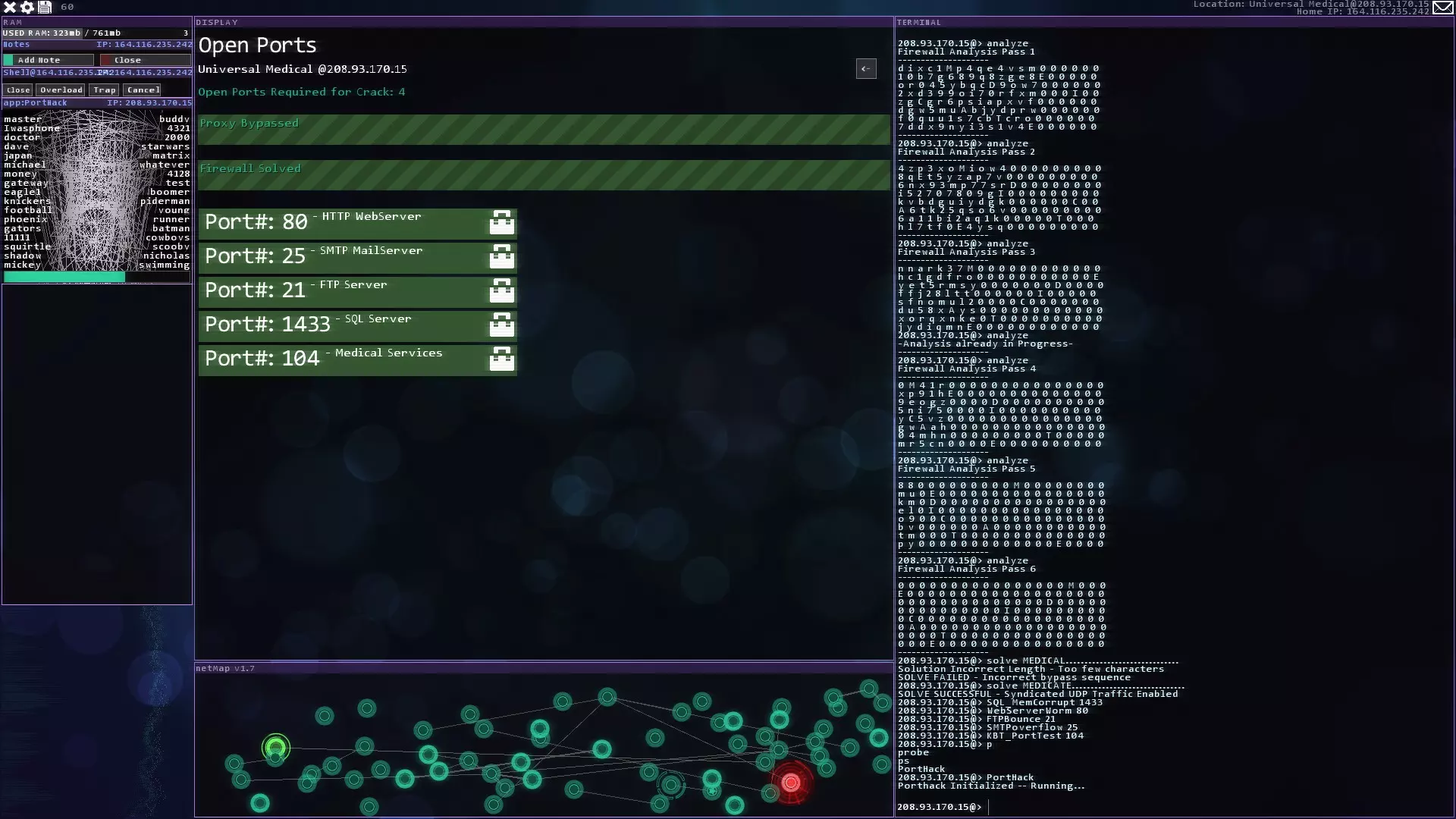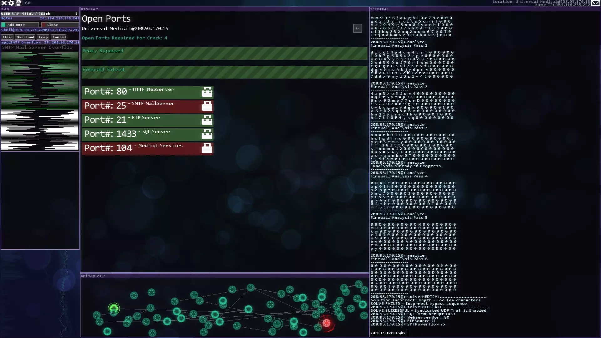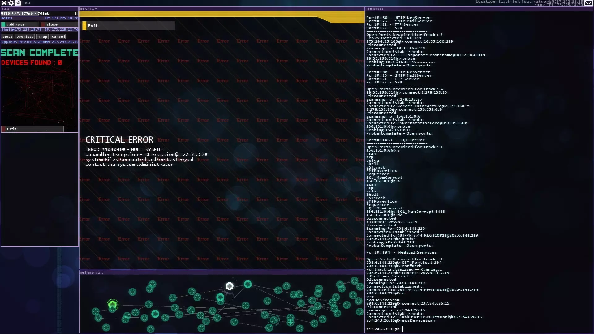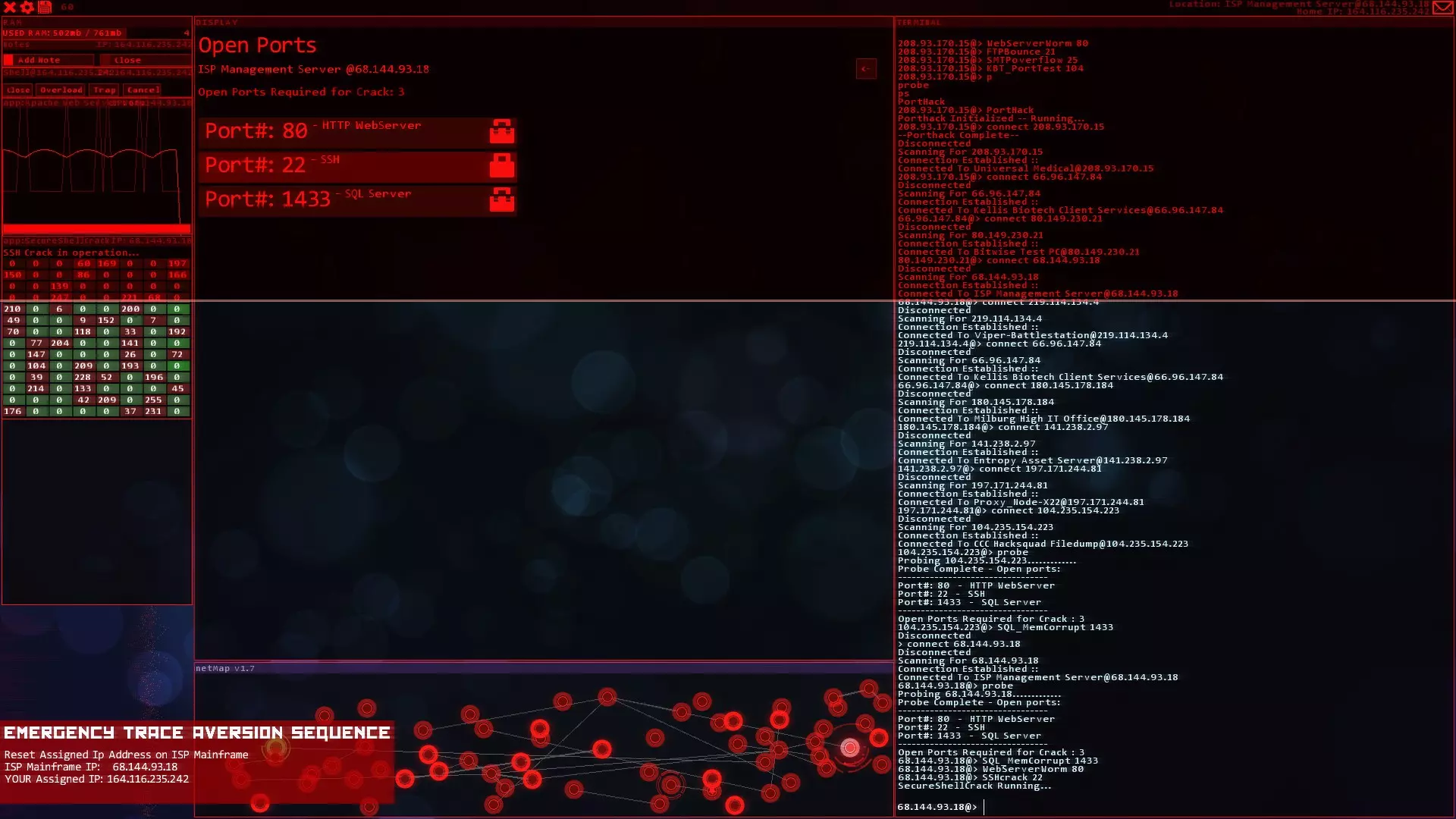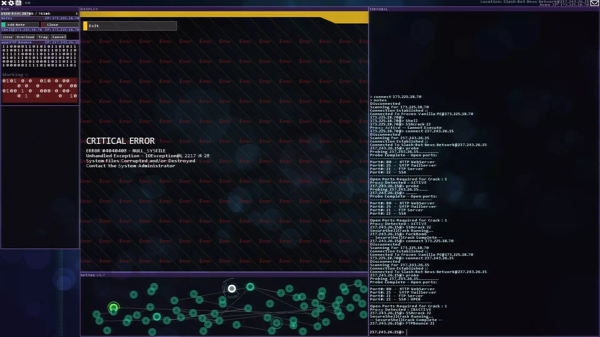 注意:紧急追踪规避序列(ETAS)将在你获得CSEC账户后立即可用 提示与技巧 - 如果你玩黑客网络,在旁边准备好纸和笔。这对后续的一些任务会有帮助。 - 使用多个Shell来绕过某些代理。这会减少绕过所需的时间。记住在绕过代理后关闭它们以恢复你的RAM。 - 像KBT_PortTest和SQL_MemCorrupt/SQLBufferoverflow这样的漏洞即使在防火墙或代理激活的情况下也能执行。 - 使用Tab键而不是手动输入内容。Tab键具有自动完成功能。 - 搜索每个服务器/节点以获取信息或秘密。它们可能会帮助你推进故事线。