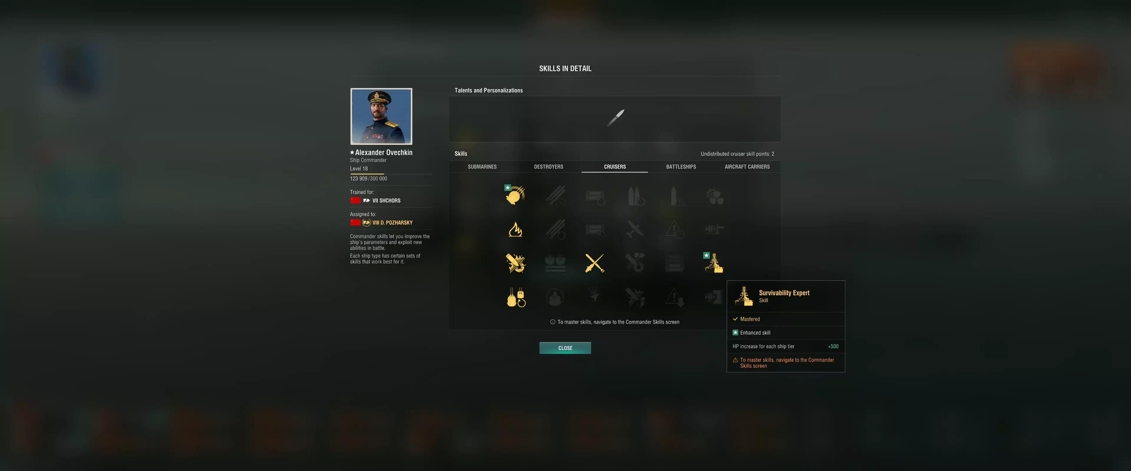 生存专家是最有效的通用技能之一,但其他技能可能与玩家的战斗风格不符。 注意:与独特指挥官不同,激活这些技能仍需消耗技能点,而独特指挥官的激活条件取决于战斗表现。 11级舰船例外 超级战舰不受适用于非常规指挥官的7-9级规则限制。