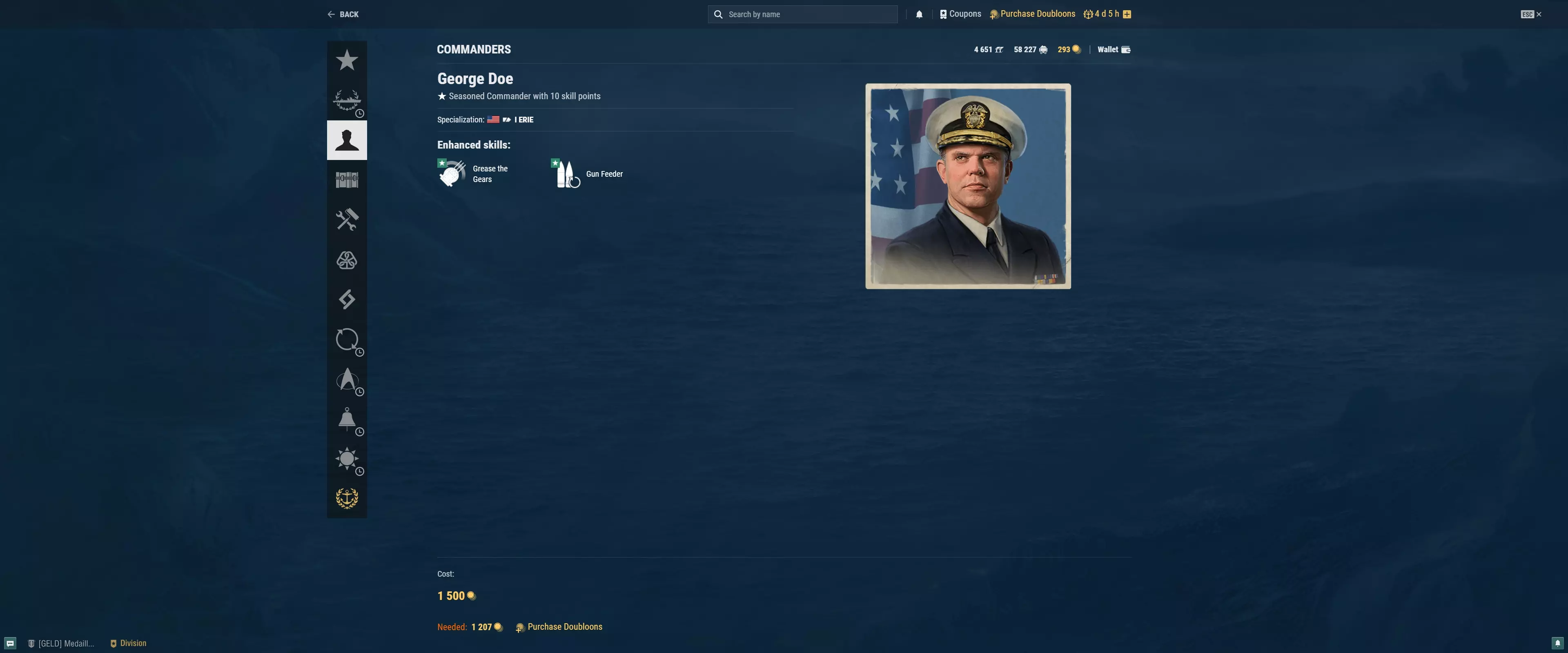 8级及以上舰船需要更具打击能力的指挥官,其等级至少达到17级,以学习多个3-4级技能。 重复使用同一指挥官 荷兰或西班牙等次要国家是重复使用非常规指挥官的理想选择。