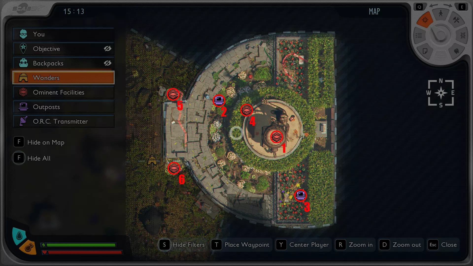 地点 描述 图片 网络中心入口 描述 图片 护林员前哨站:花坛 描述 图片 护林员前哨站:玫瑰园 描述 图片 雕像检查站 描述 图片 雕像:北部高地 描述 图片 雕像:南部高地 描述 图片 地标:仪式(5)