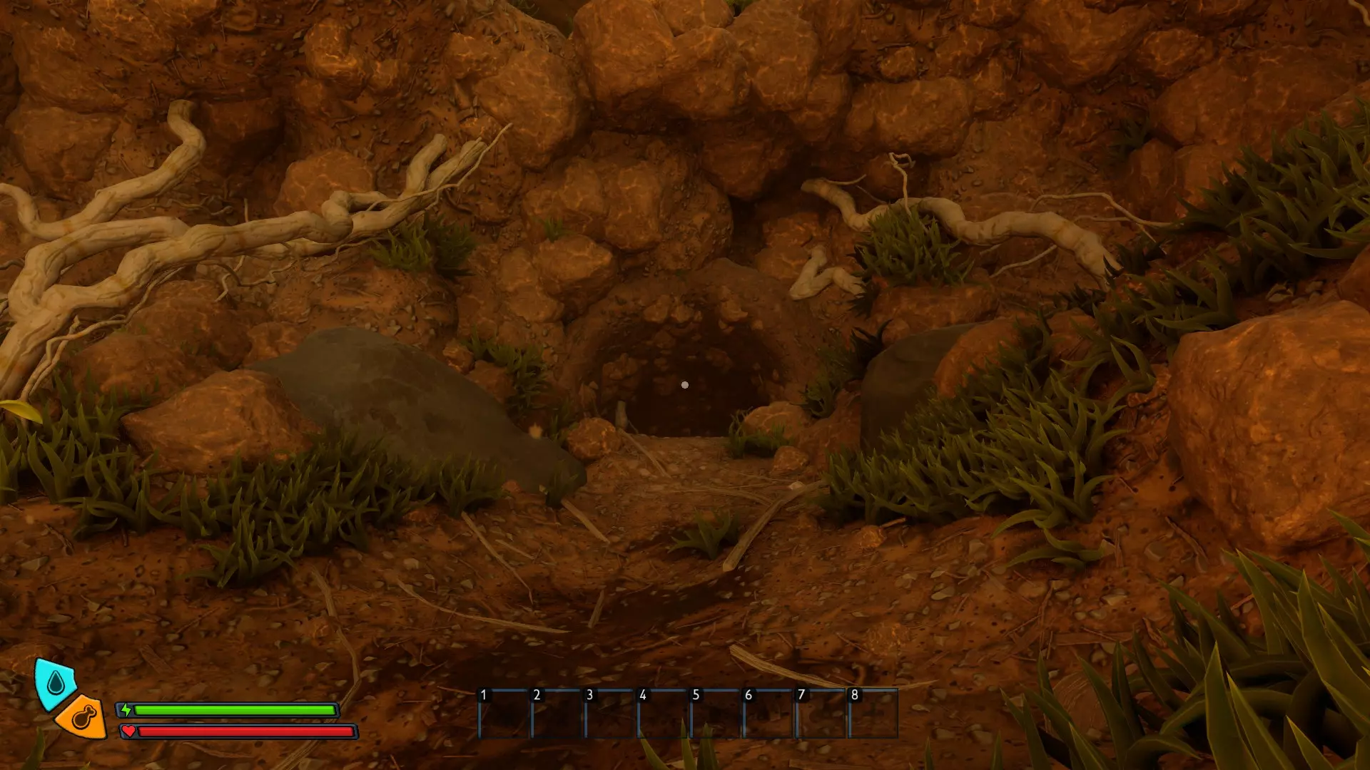 孵化场蚁丘:南入口 位于区域北边界附近的一簇枯草茎中间