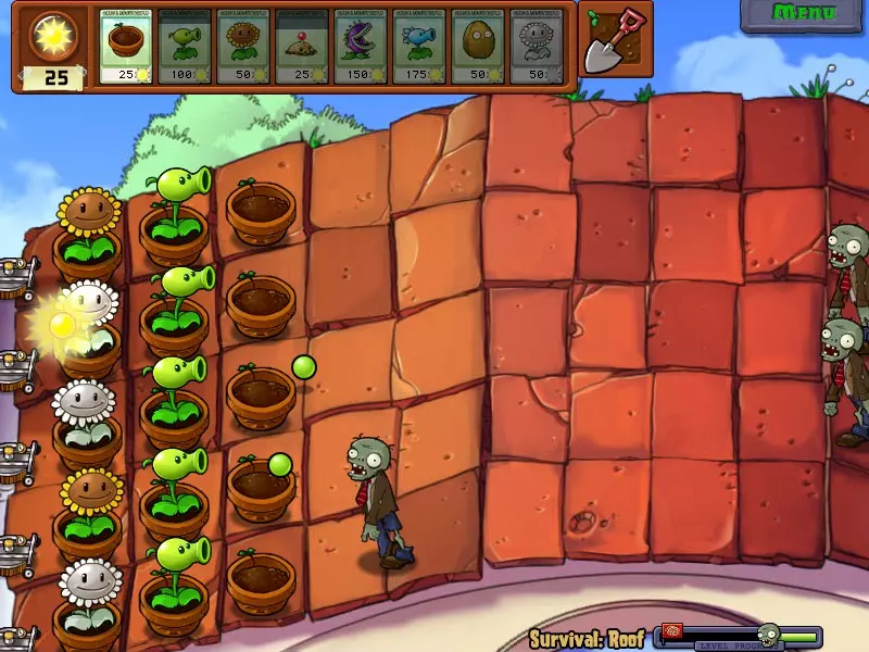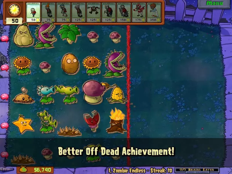 连续击败僵尸可以获得一些金币,当出现金币时,说明你已经连续击败了5个僵尸!成就达成! 阳光灿烂的日子