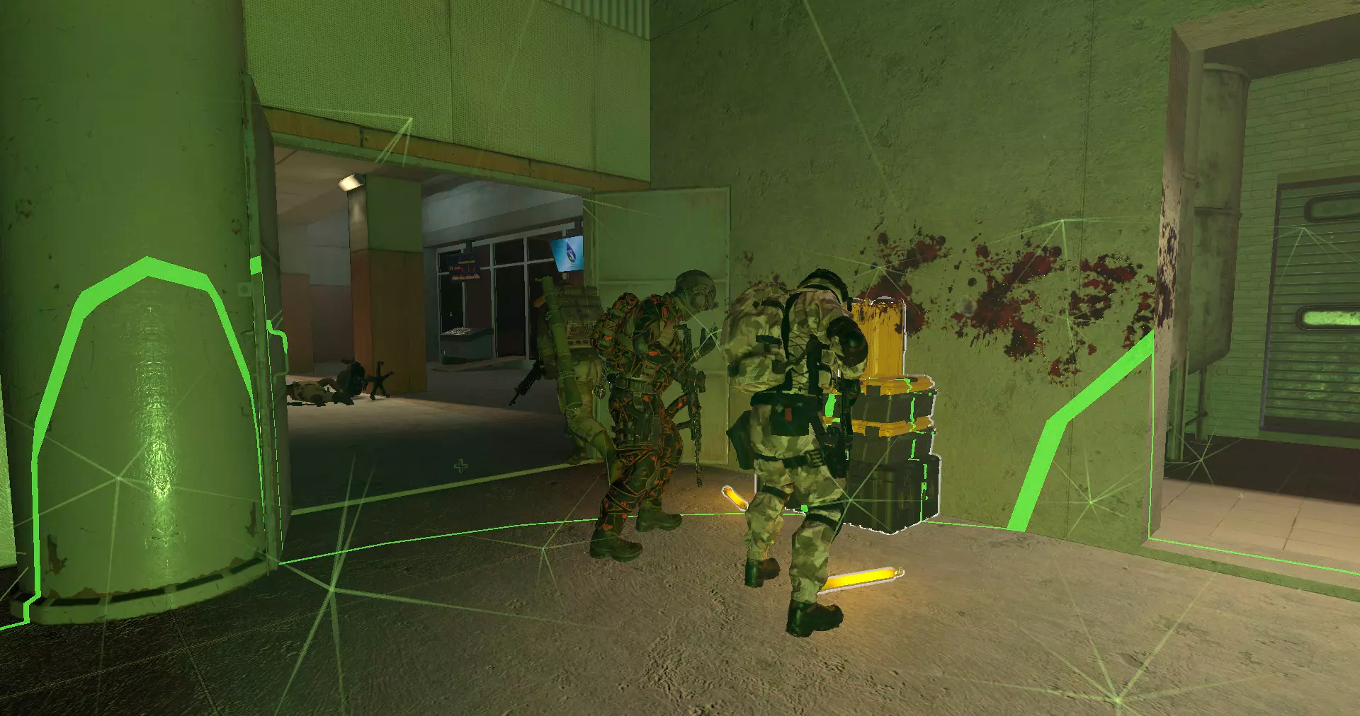 这些铁幕几乎无法保护终端,但应该能保护中心区域和侧门附近的玩家。