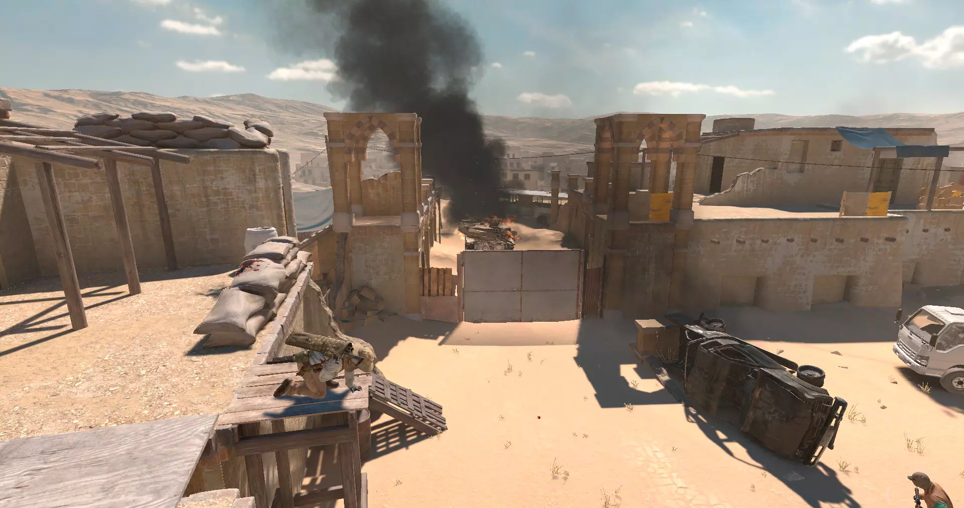 现在,当所有人都准备好后,登上通道,在防弹钢板后占据位置并消灭中士。如果有带主动防御的【奖励/巴吉】和/或非常优秀的狙击手,你们都可以到弹药箱所在的那一侧蹲守。