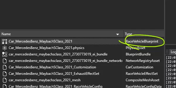 (我正在使用迈巴赫) 在文件夹内你会看到一堆文件, 你需要找到名为RaceVehicleBlueprint的文件。