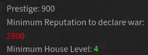 条件 每个家族都可以向特定的村庄、城市或城堡发送战书,但前提是拥有足够的【声望值】,并且达到目标地点所需的家族等级。