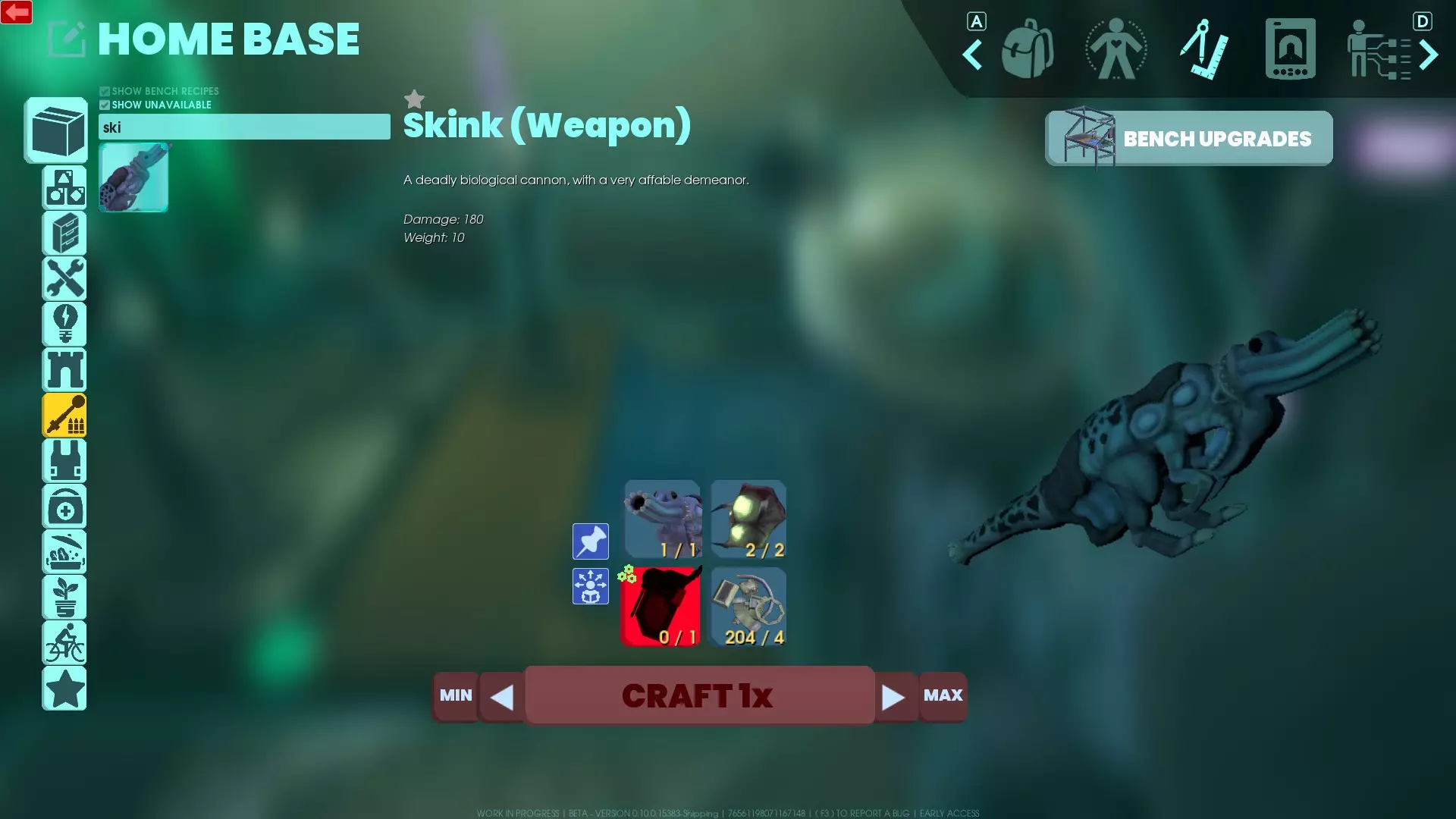 喂养男孩 石龙子拥有非常大的弹药池和相当不错的伤害,但它需要放射性废料才能运作。你可以通过与设施周围任何足够深的发光物质池互动来为它补充燃料。