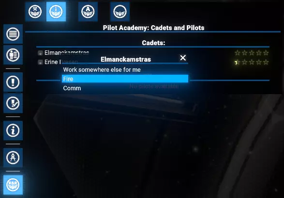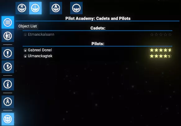 此外,请注意目标舰船船员已满的情况。默认情况下,此时不会执行飞行员交换,玩家会收到警告通知。 但如果启用了【船员已满时自动解雇技能较低的船员】选项,系统将自动解雇资质较低的船员,为新飞行员的调入腾出空间。 学员与飞行员 此标签页显示玩家的学员和训练有素的飞行员列表。初始状态下,两个列表均为空。